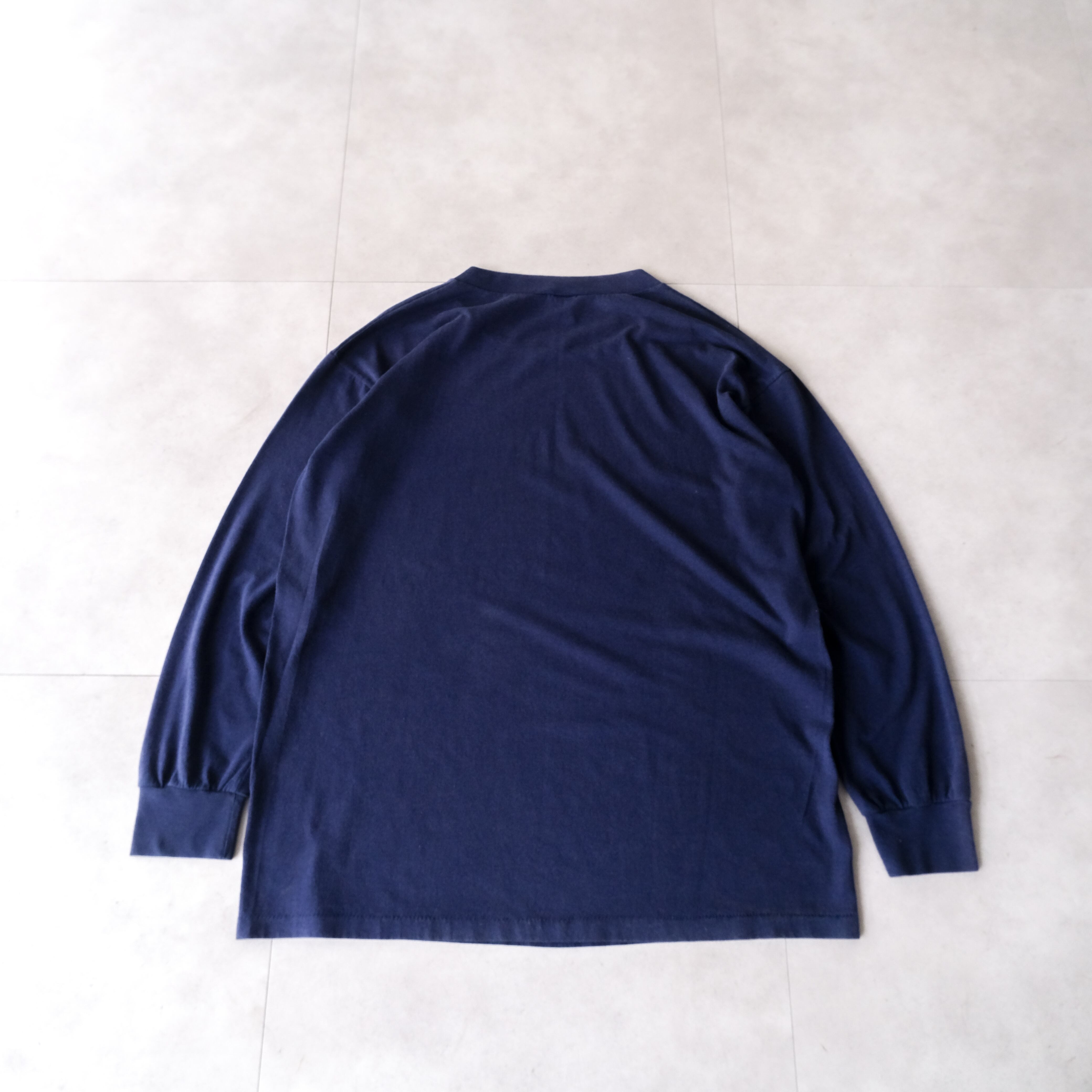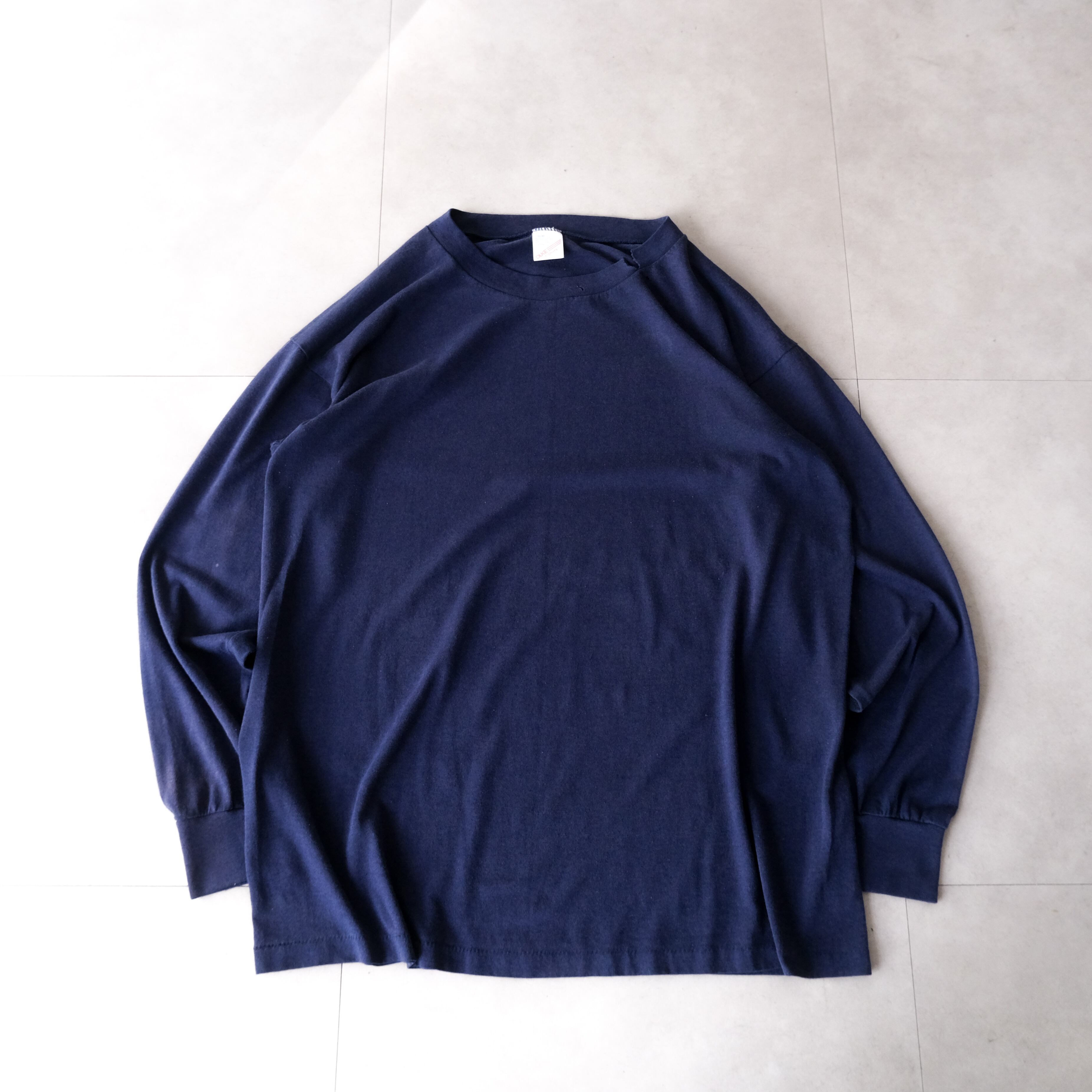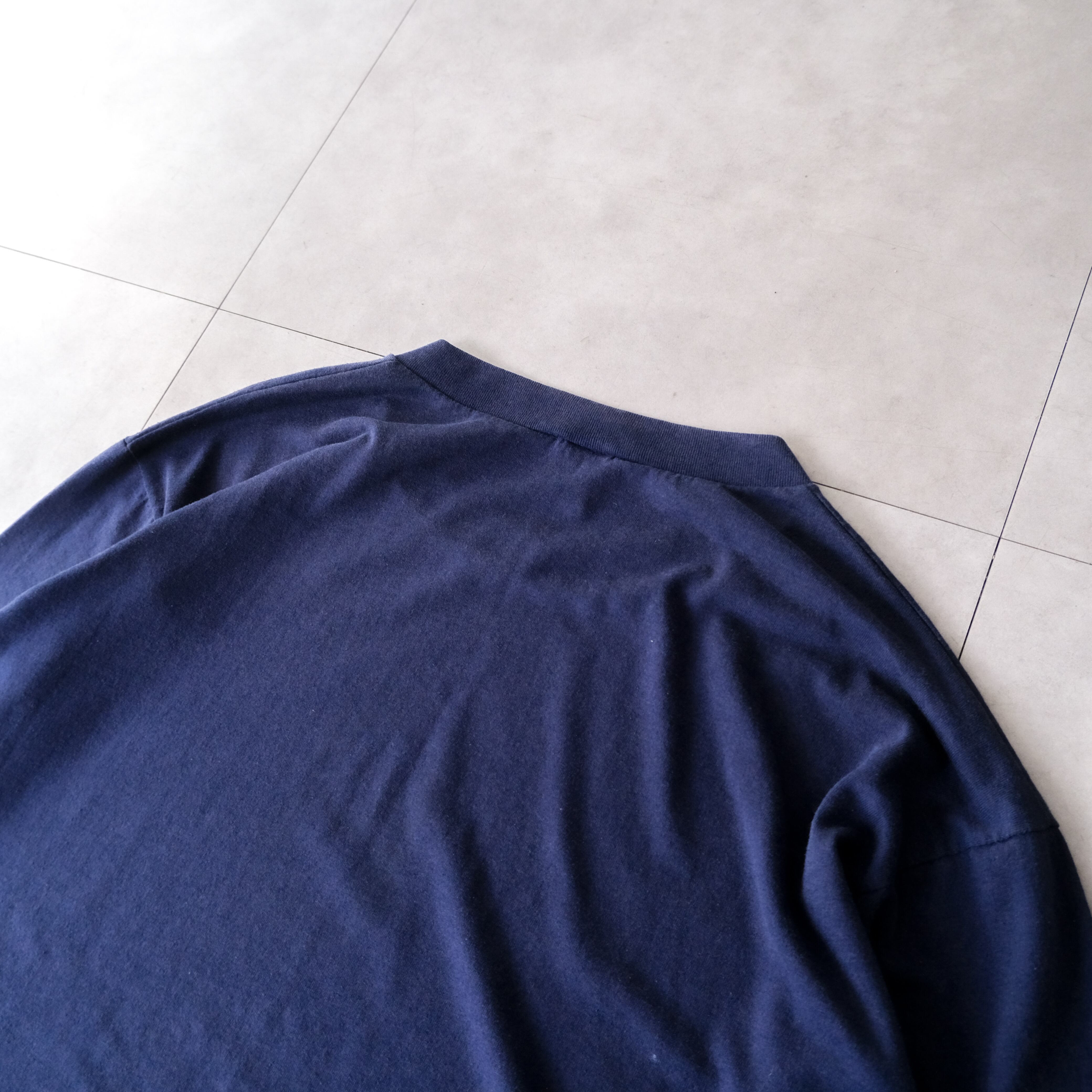 90s ちょいボロの緩いフェードしたダークネイビーの無地ロンTee made in USA