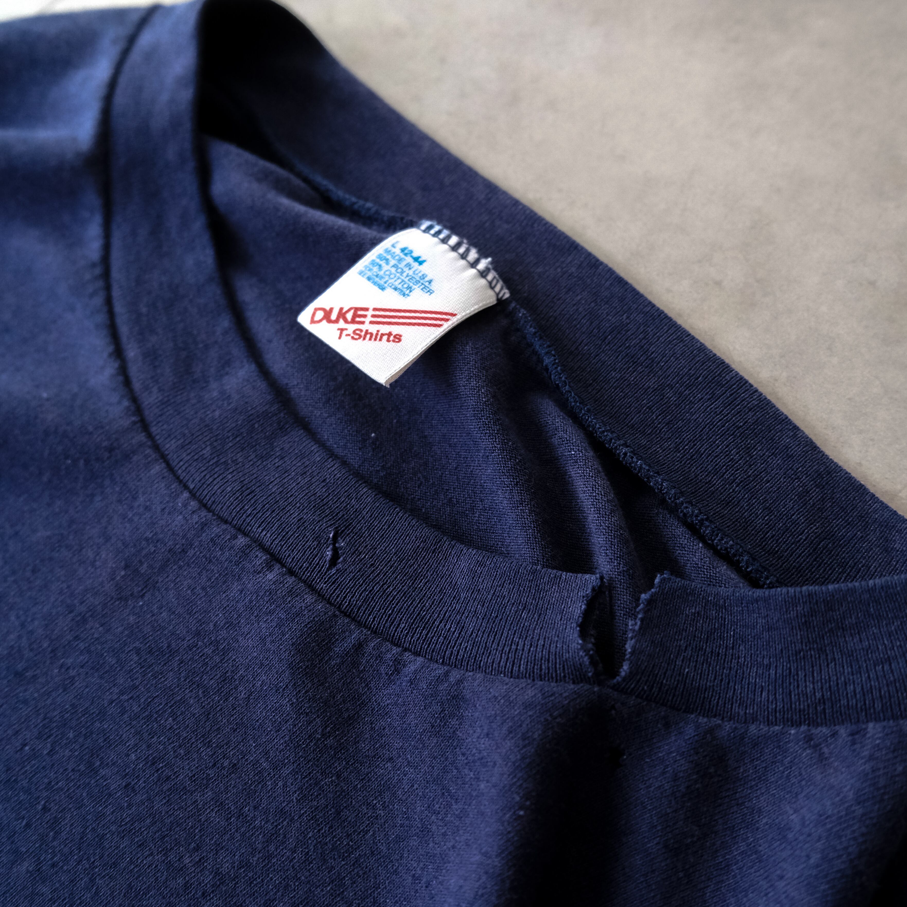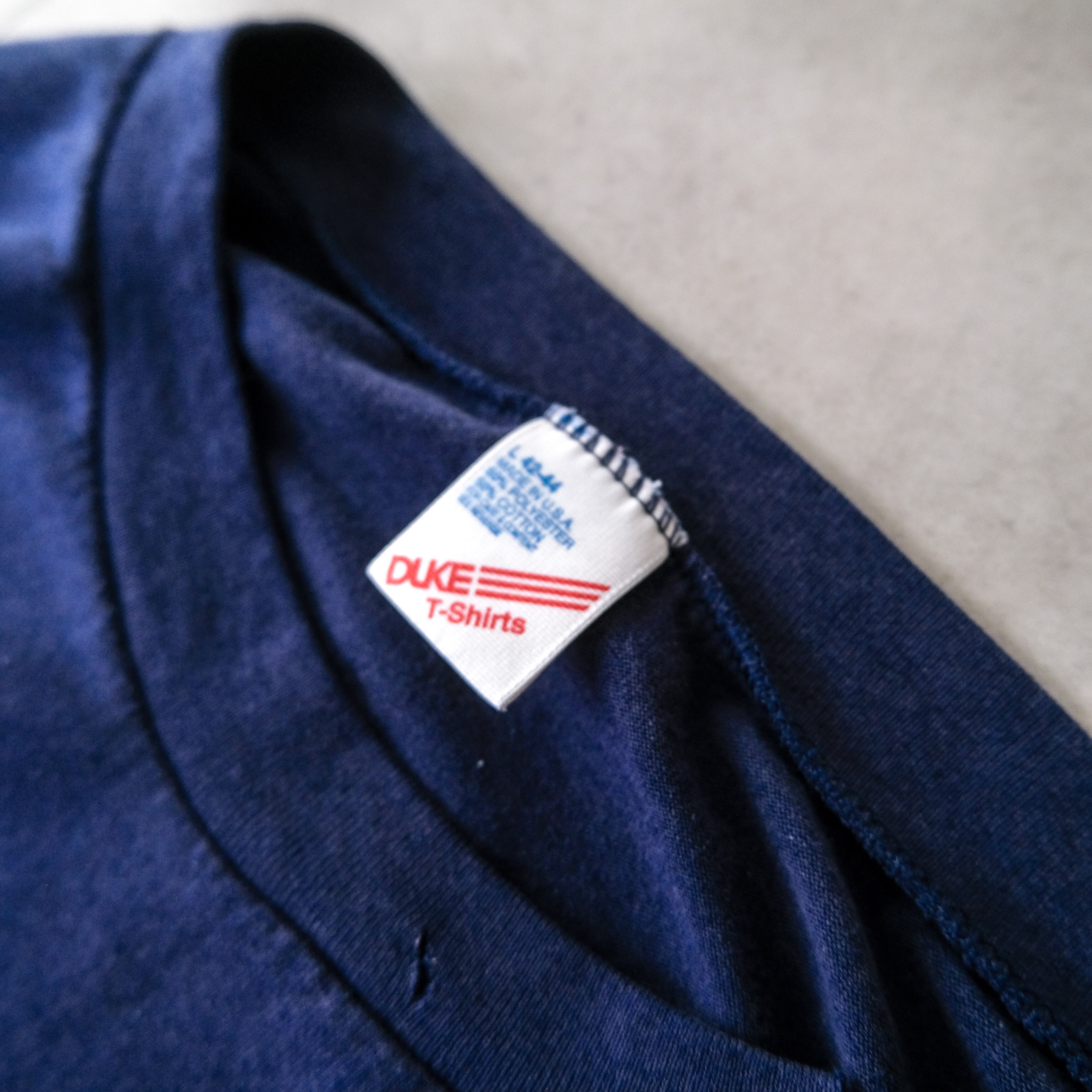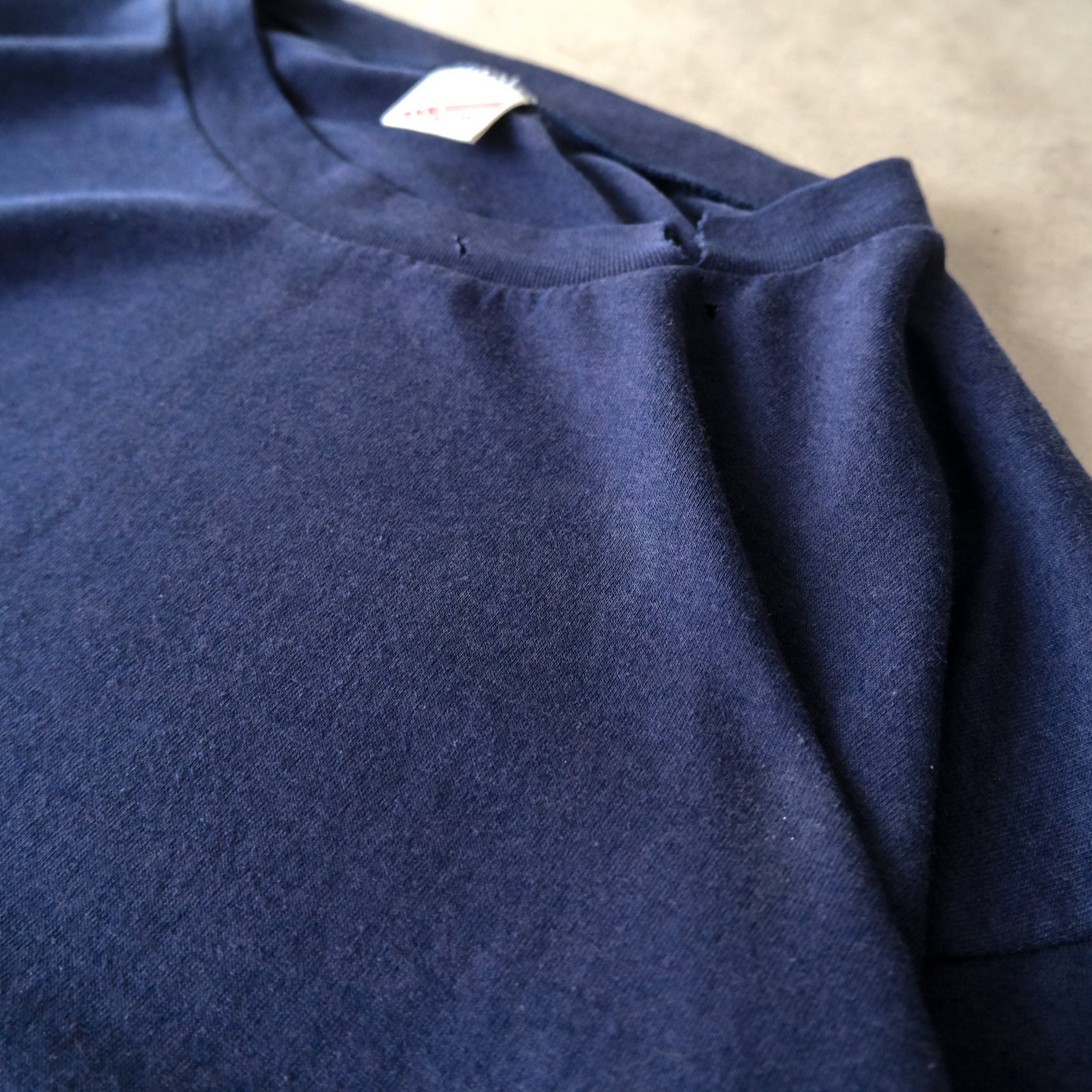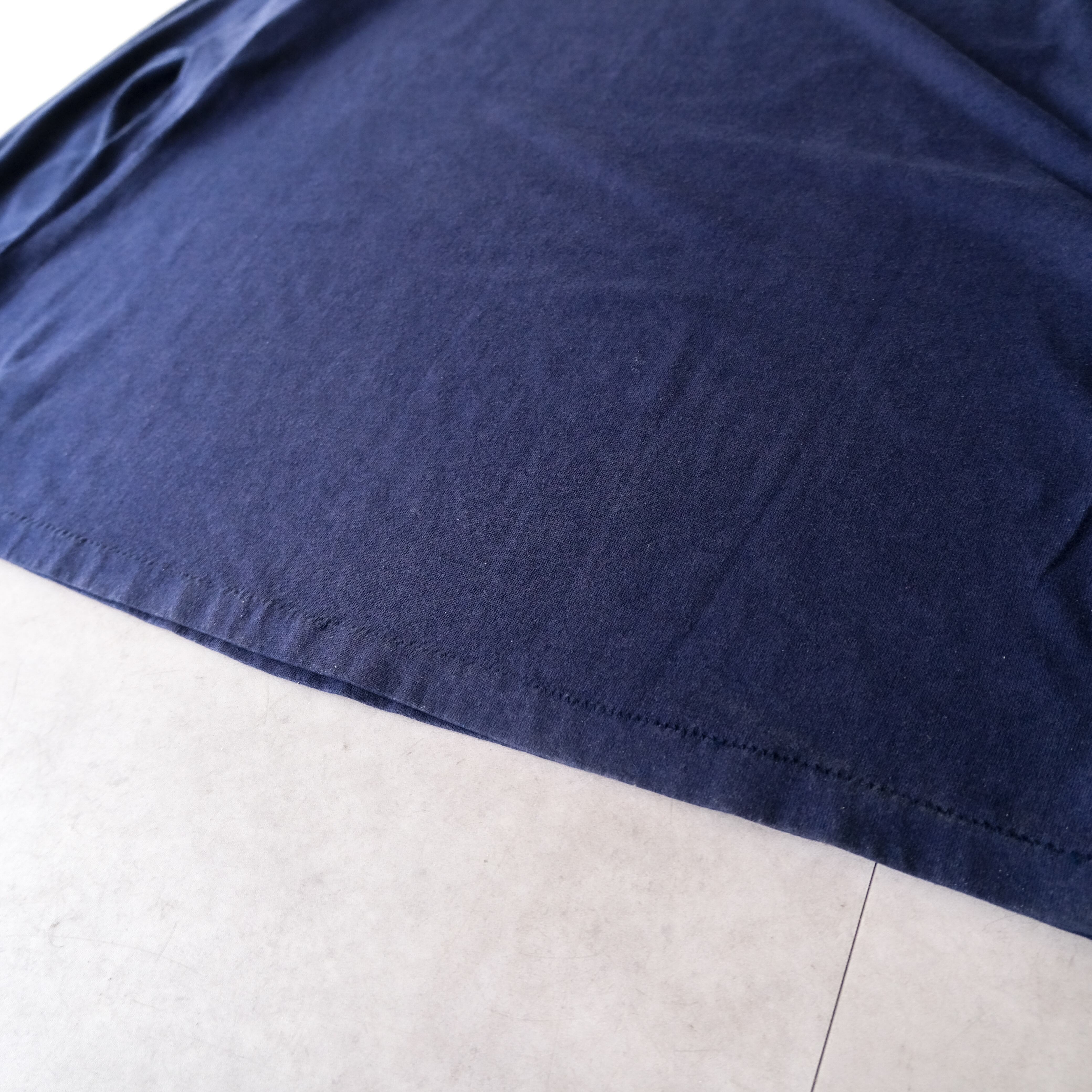 90s ちょいボロの緩いフェードしたダークネイビーの無地ロンTee made in USA