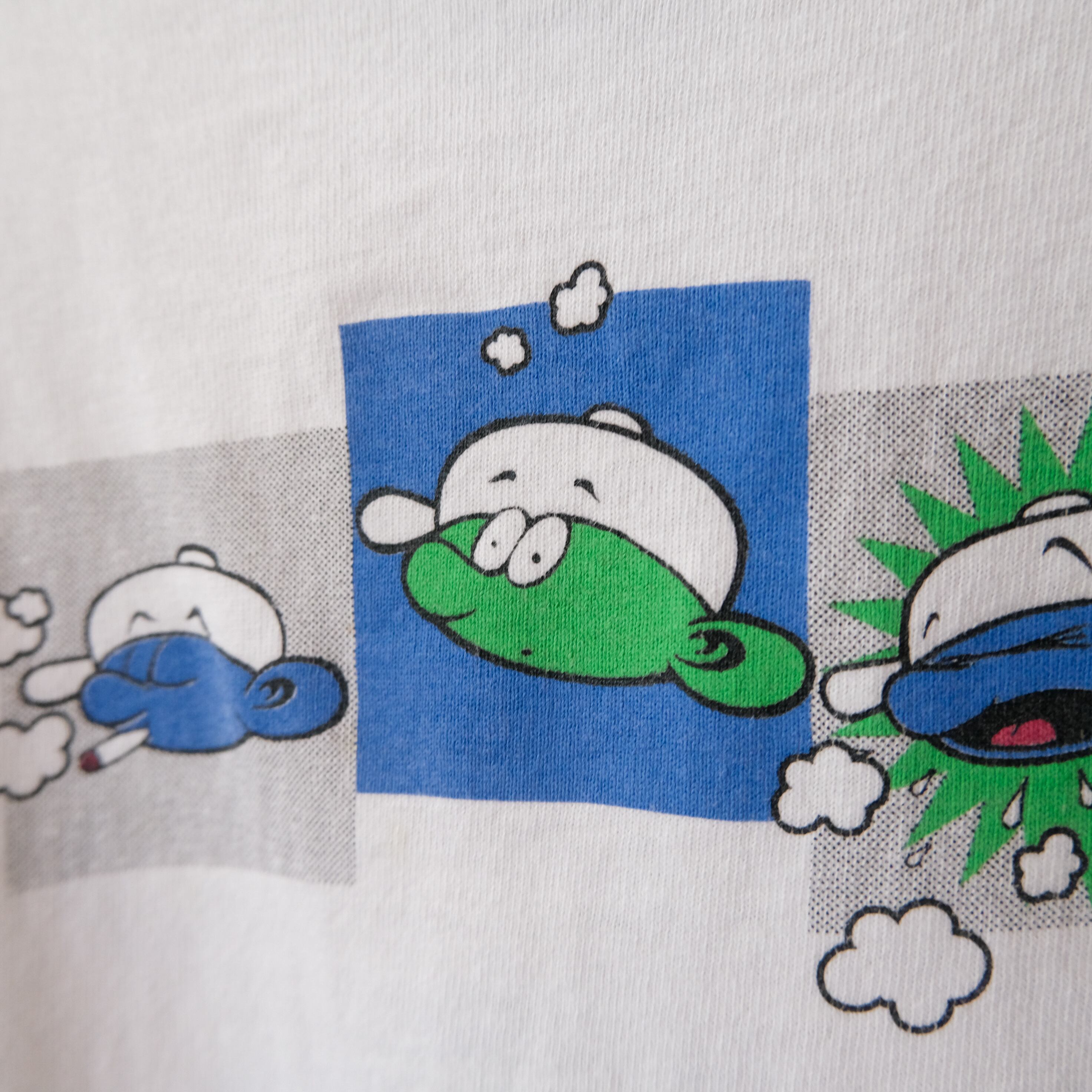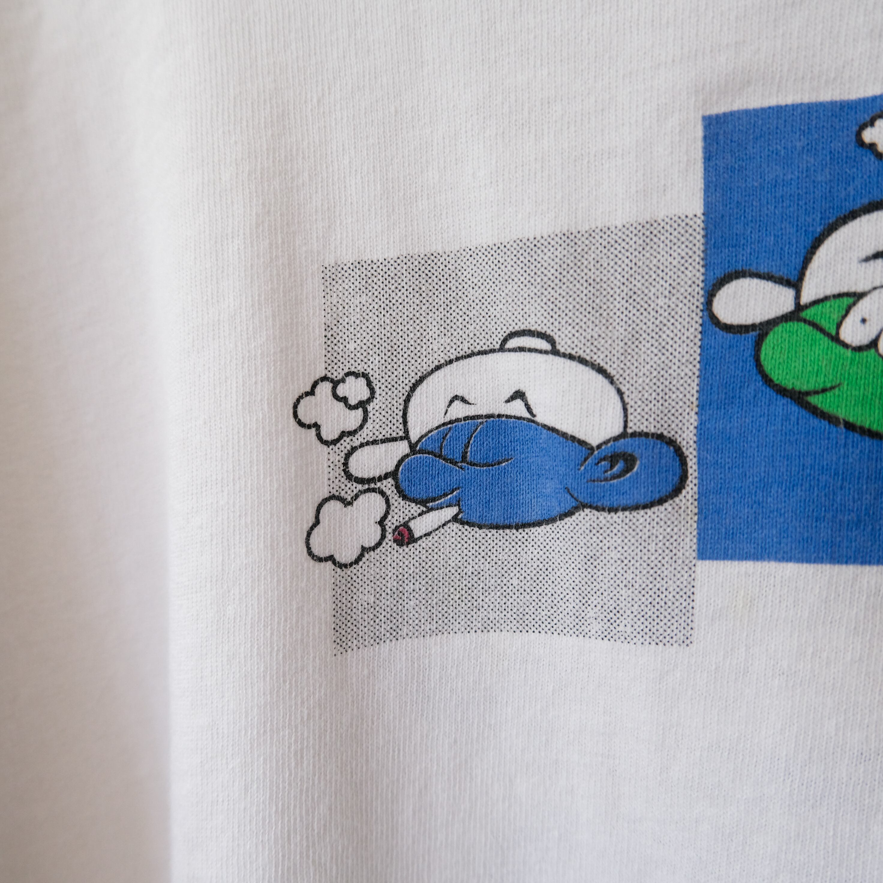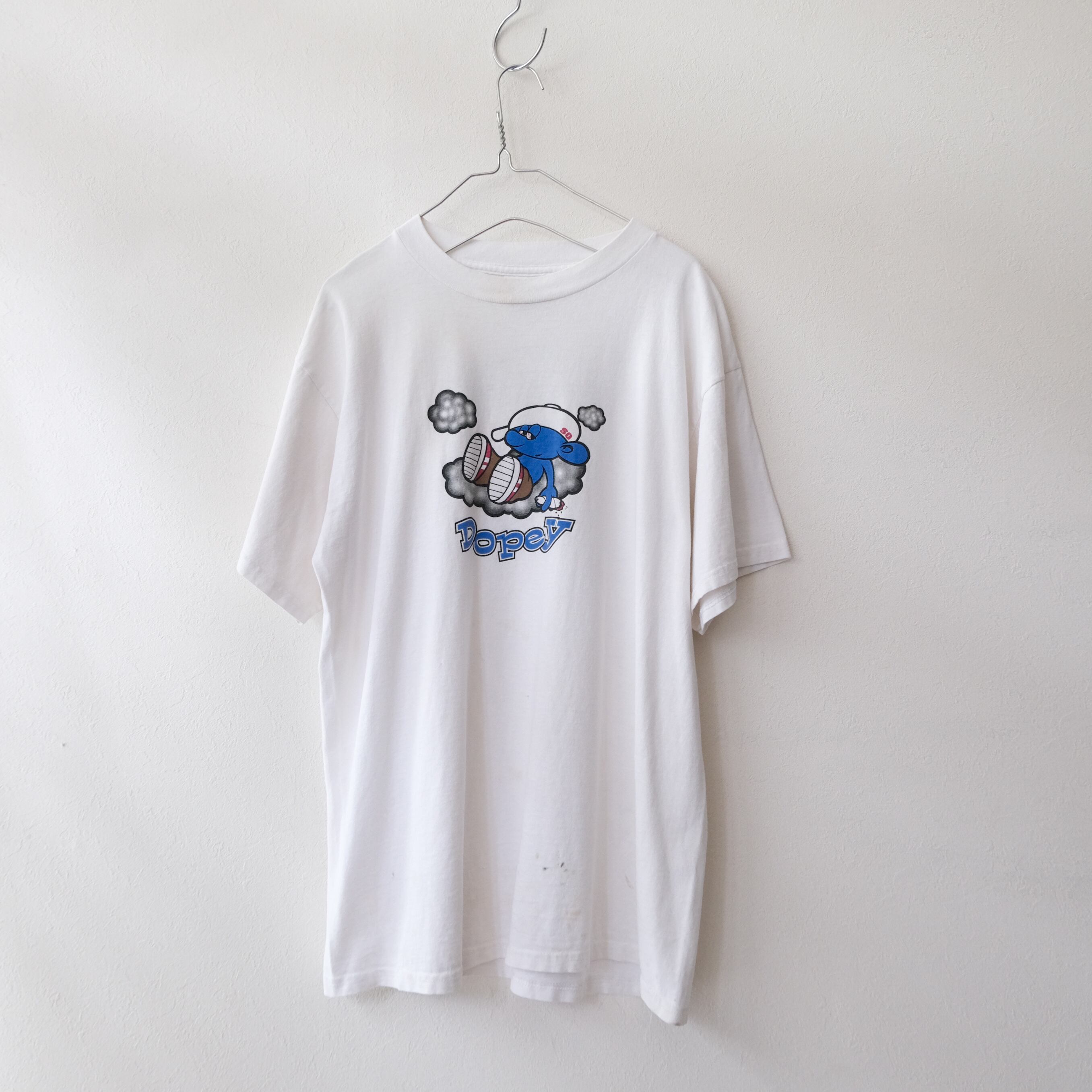 90s スマーフの草ネタパロディtシャツ 目バッキバキです。