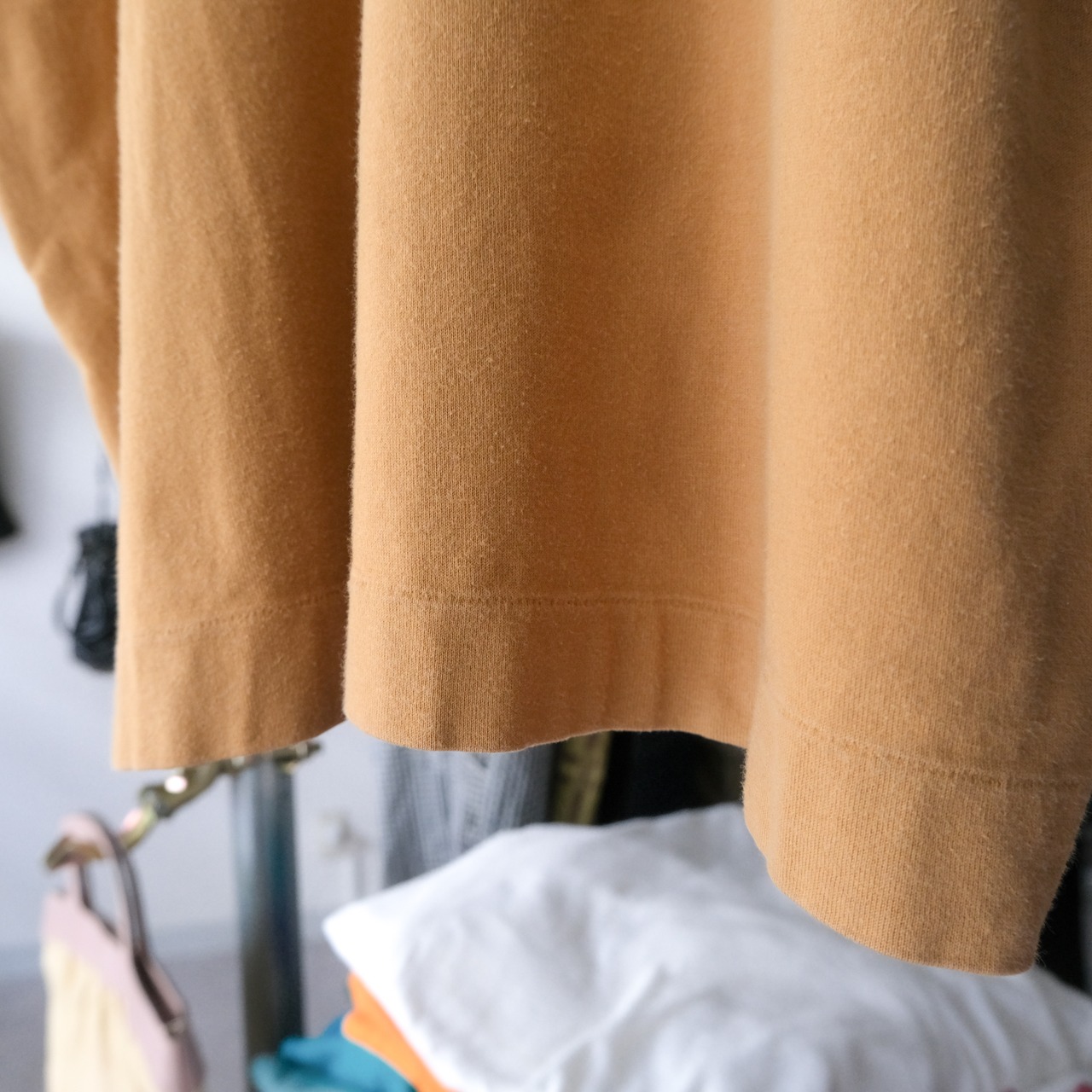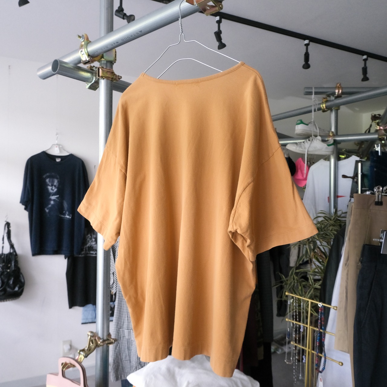 一方着丈はそこまで長くないボックスシルエットで、