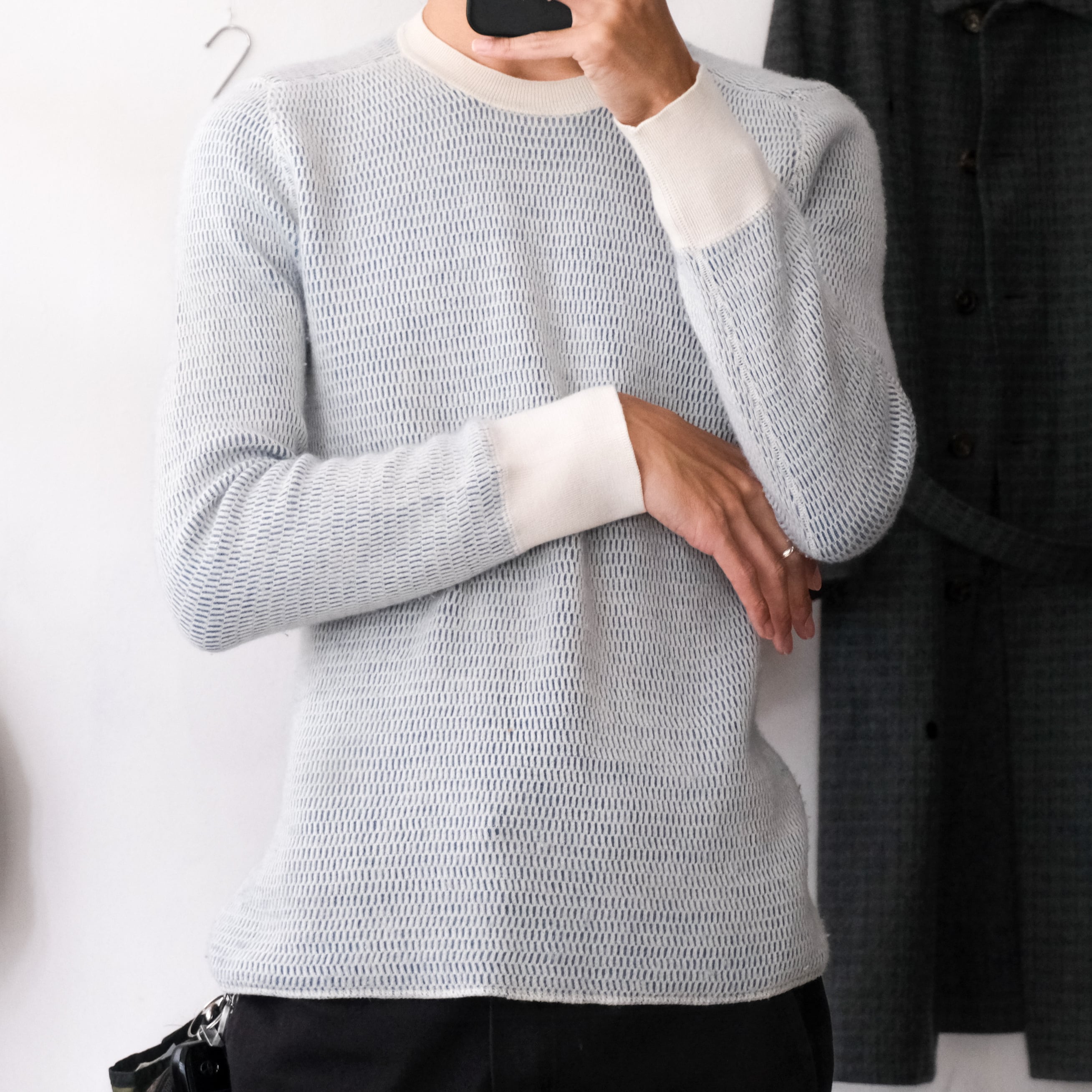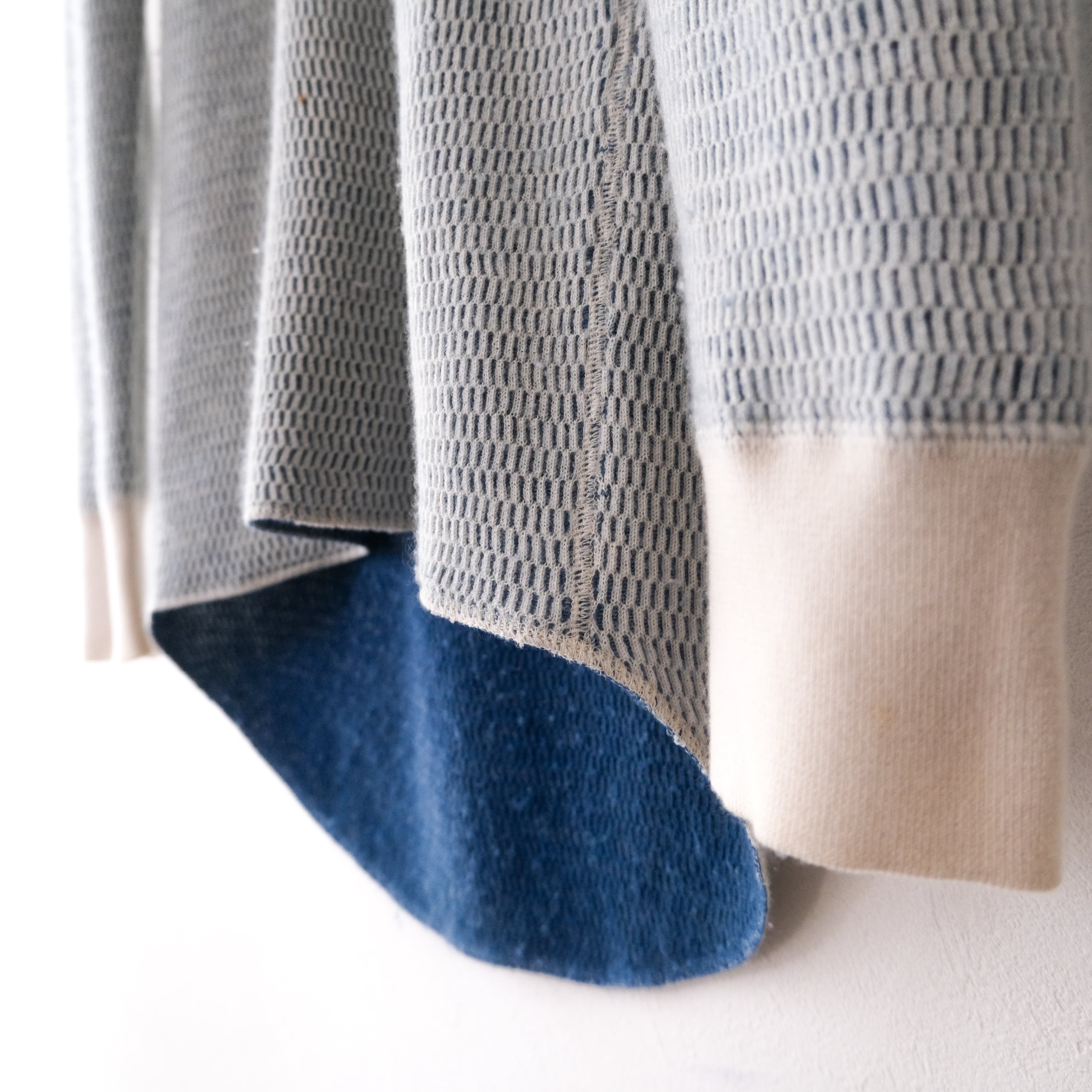 カシミヤ混紡のふわっとしたワッフル編みから覗く裏地は、
