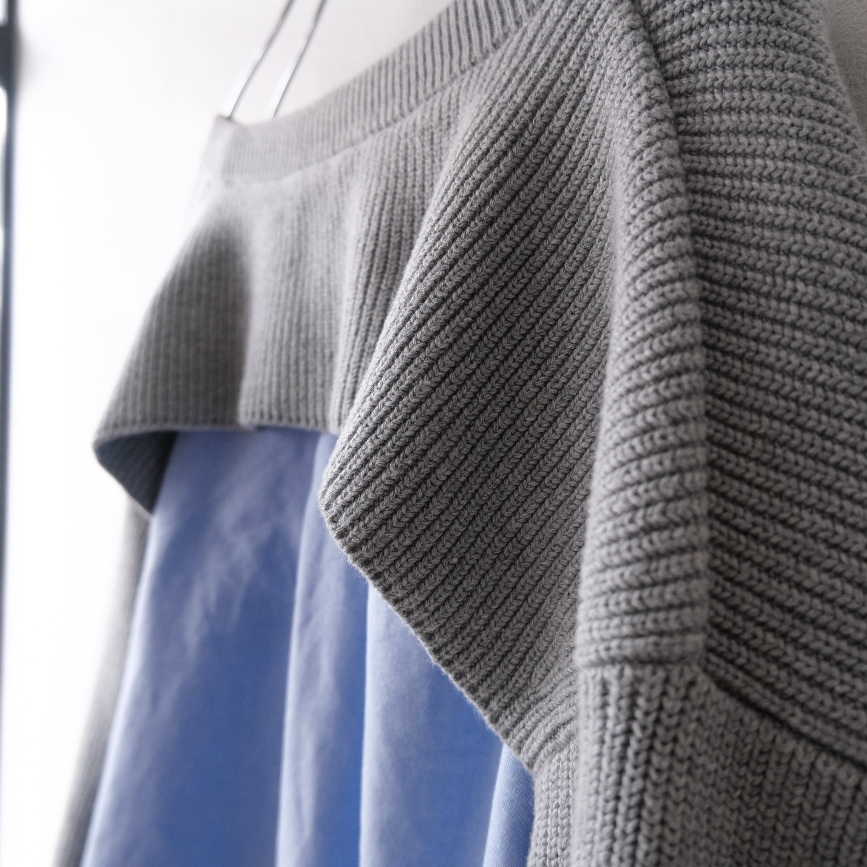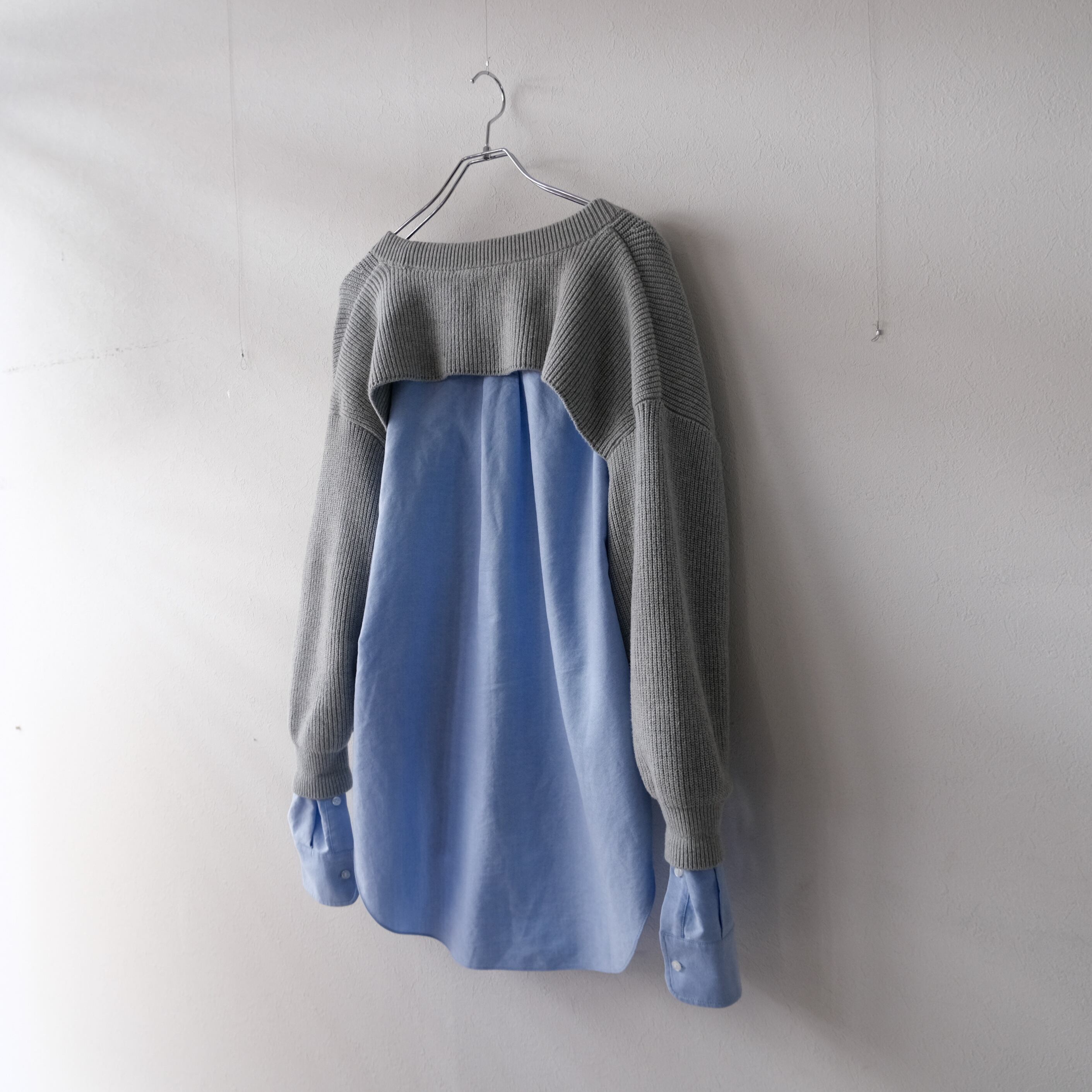コットンのリブ編みニットドレスシャツドッキング。