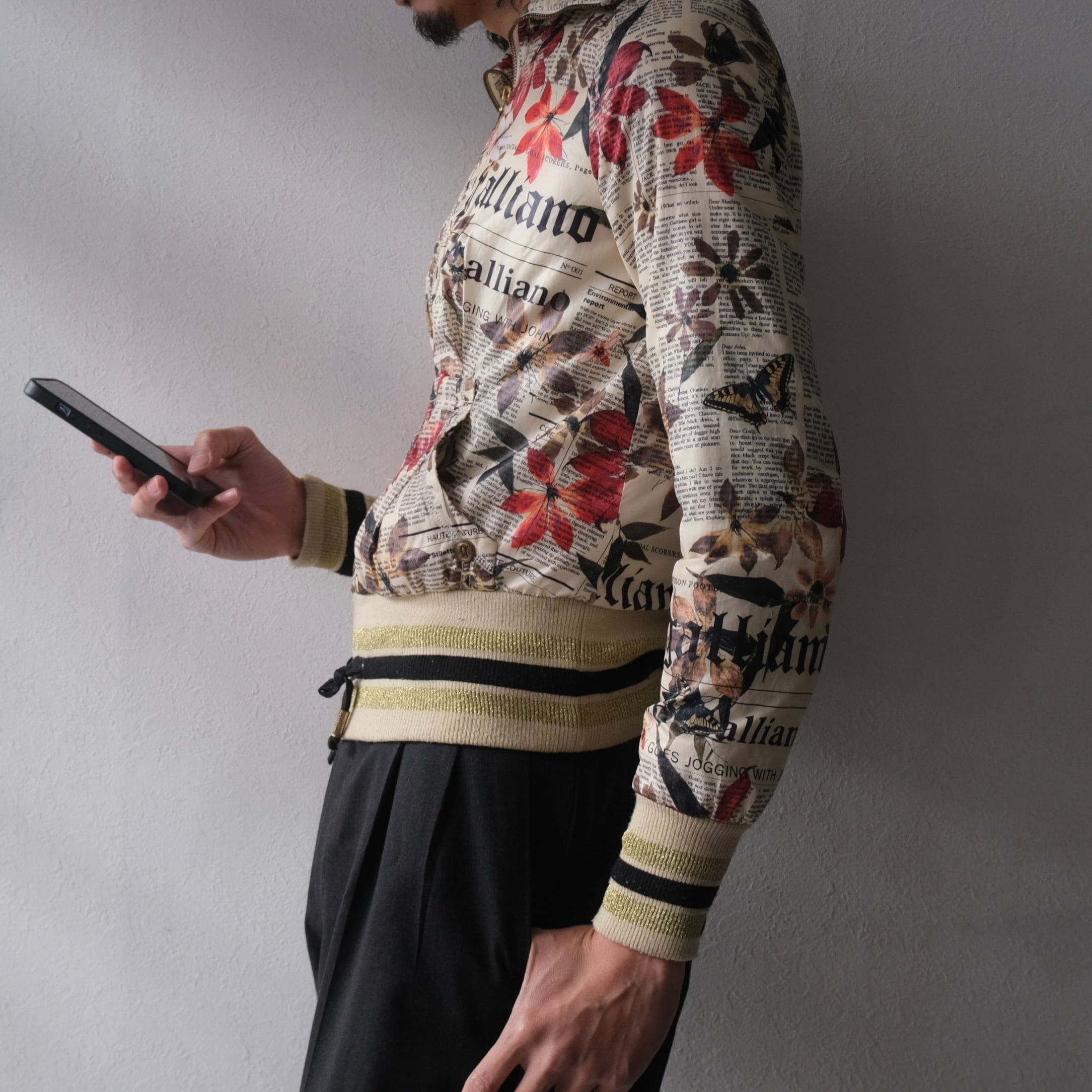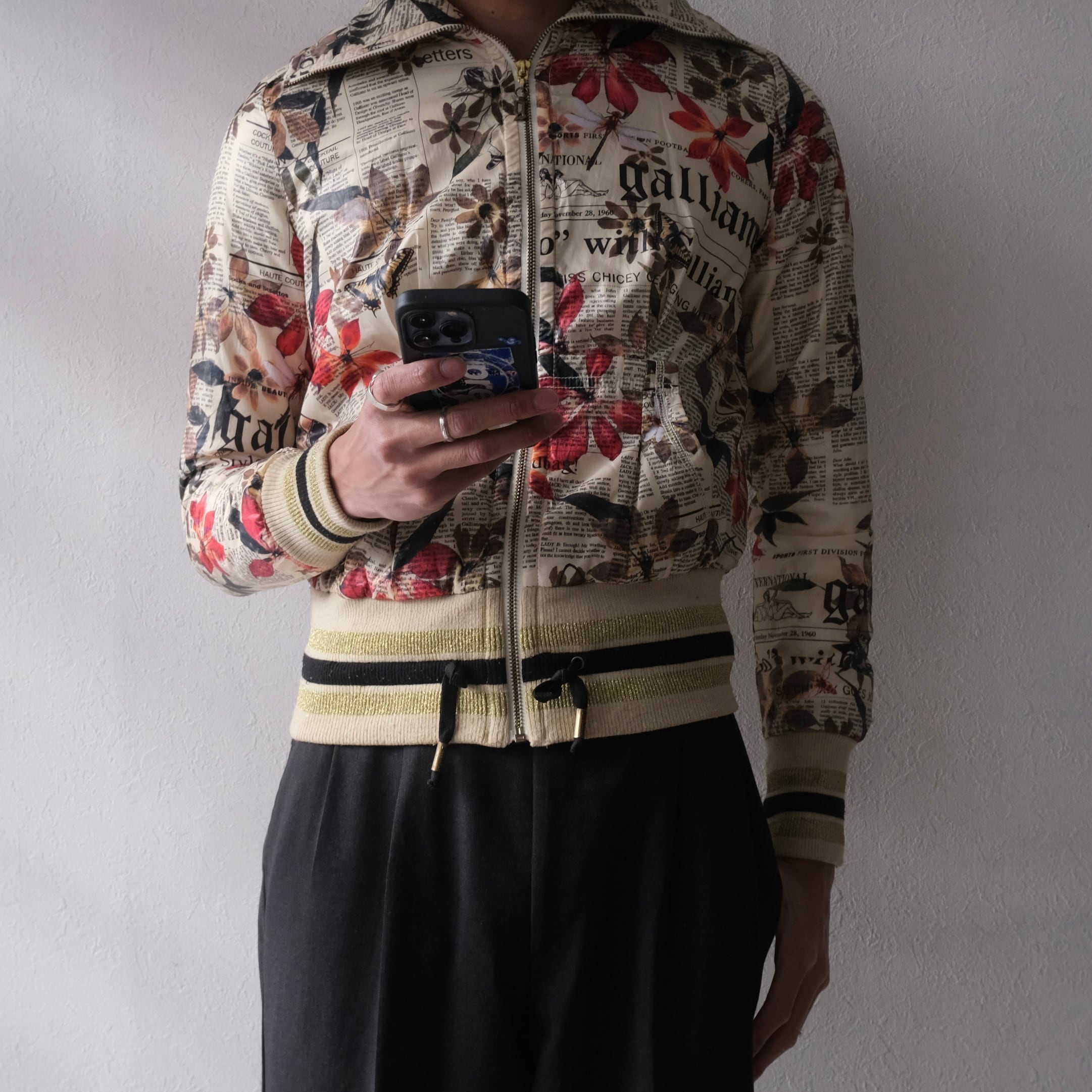 2006AW “Galliano” newspaper × flower pattern pudded jacket