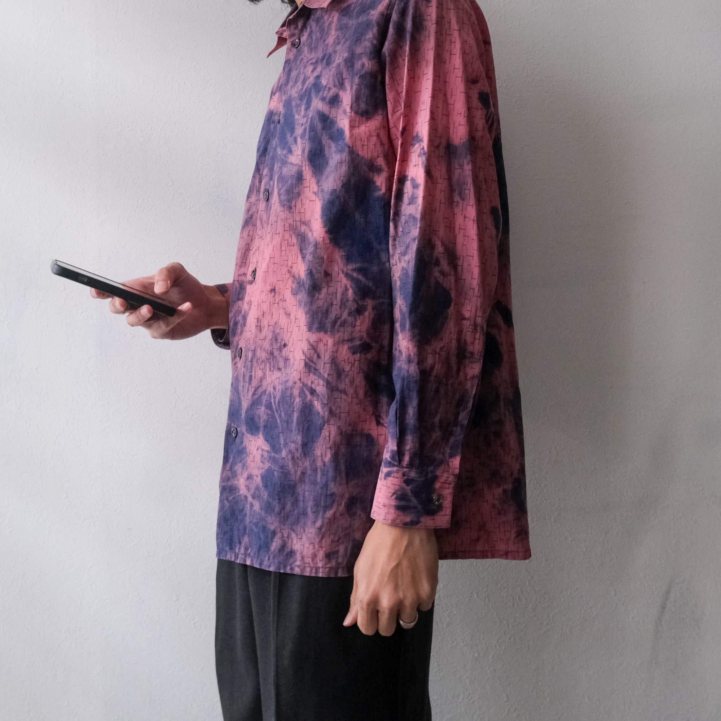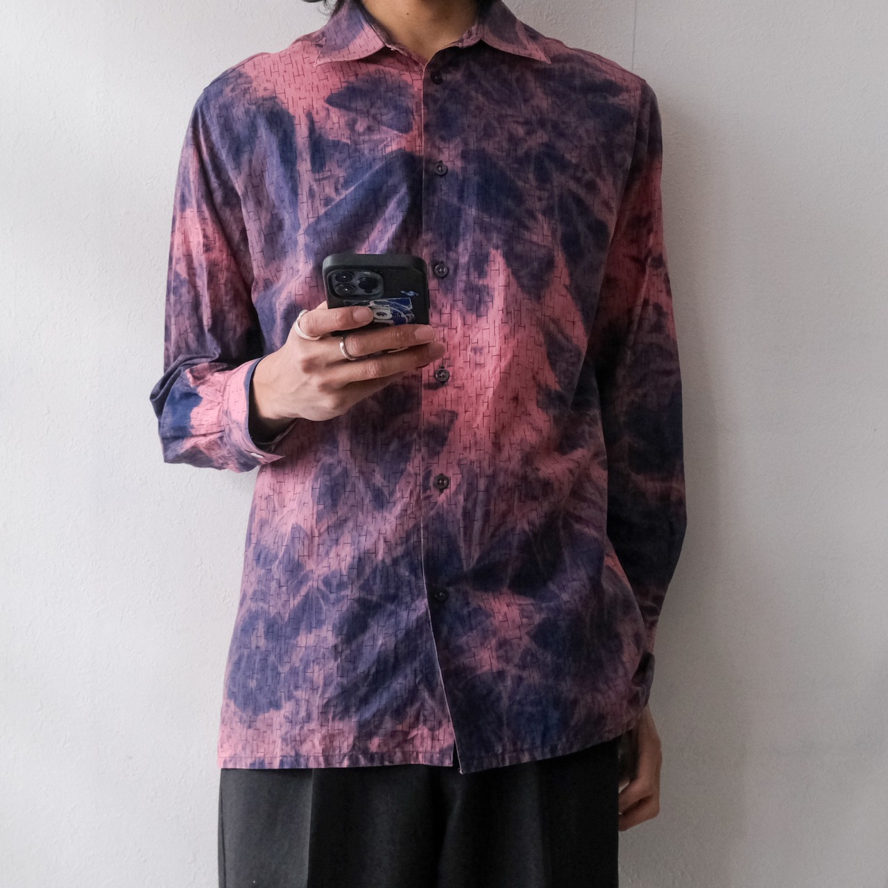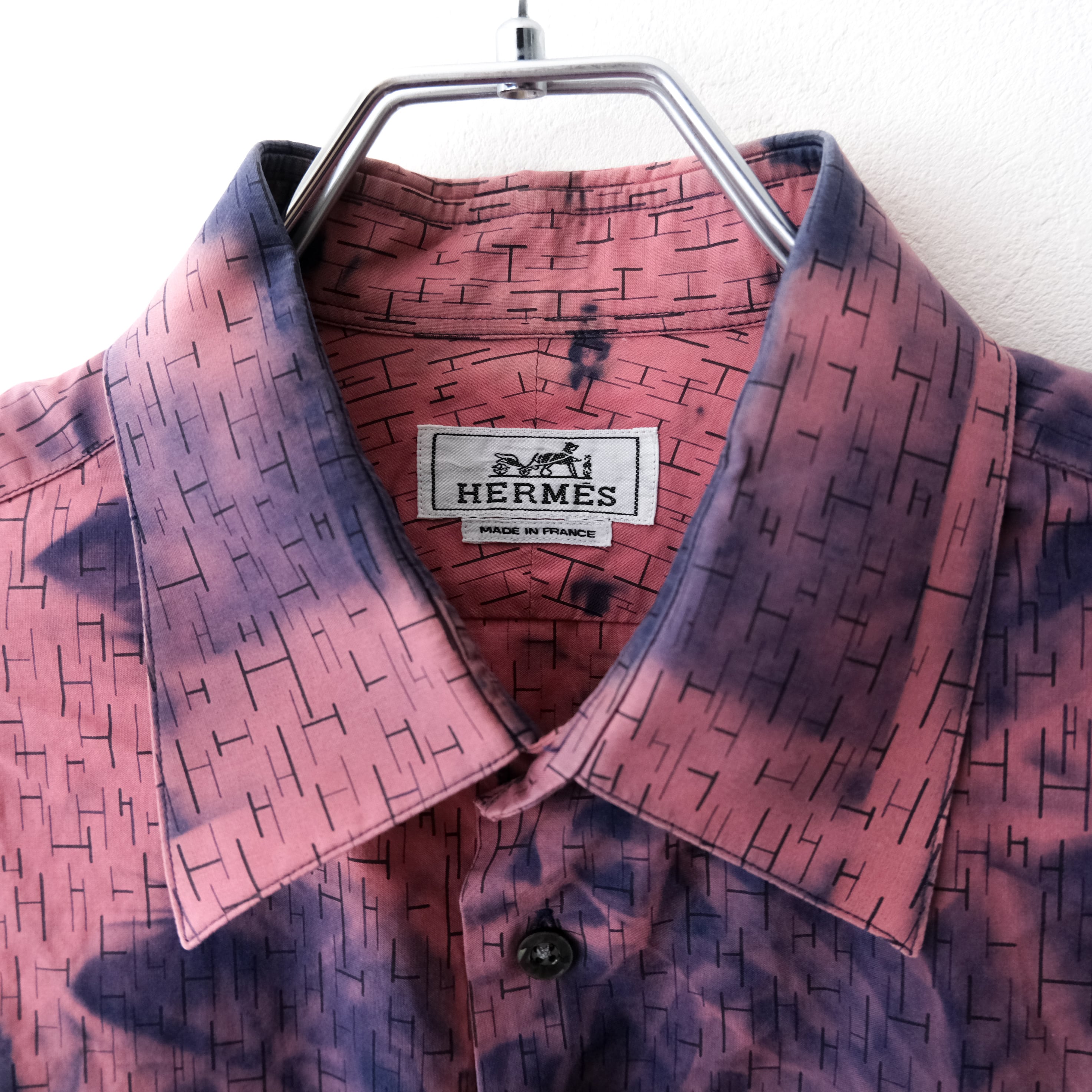“HERMES” 脱色×H総柄 long sleeve shirt
