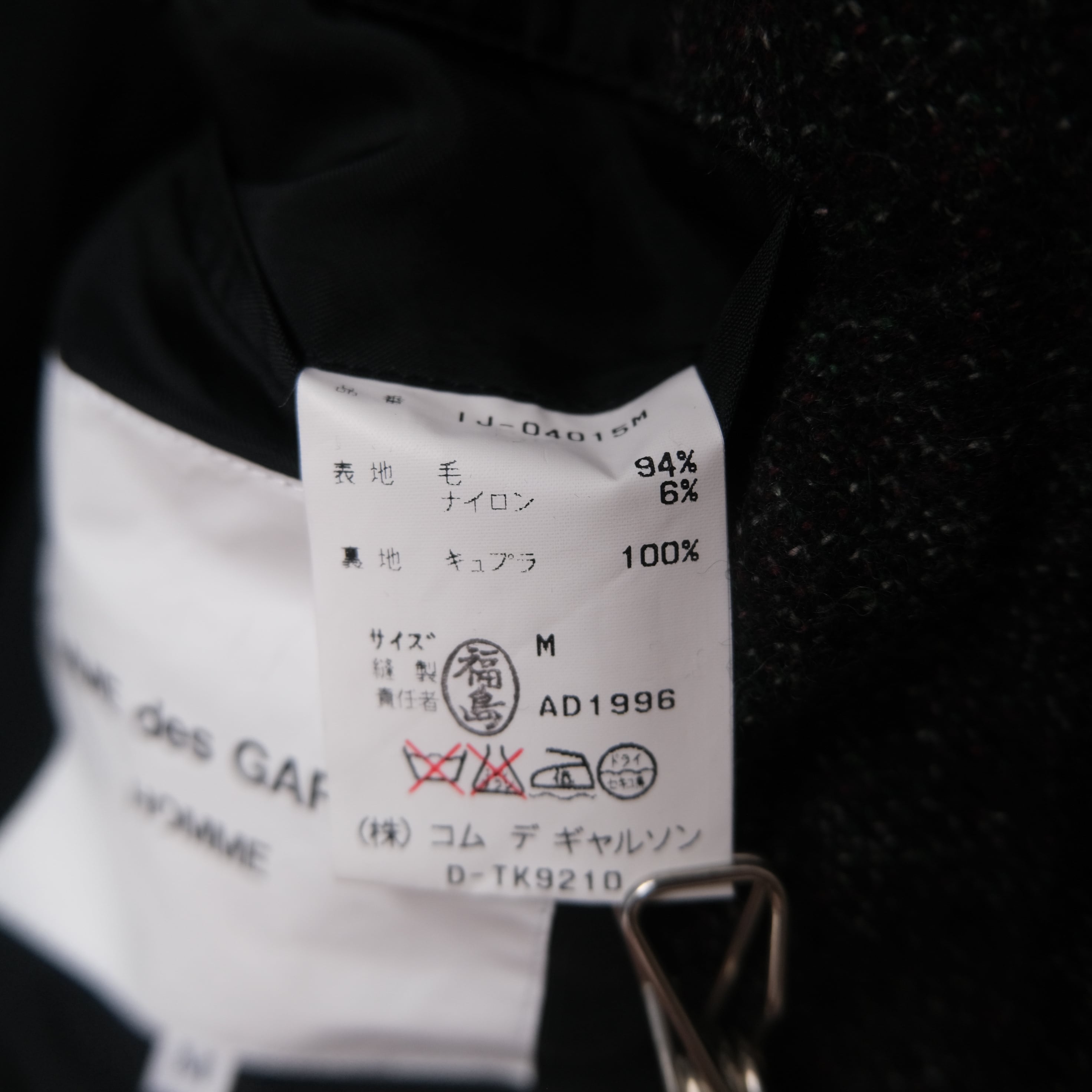 90s “COMME des GARÇONS HOMME” 3-button deformation tailored jacket 白タグ オムスペ 田中オム