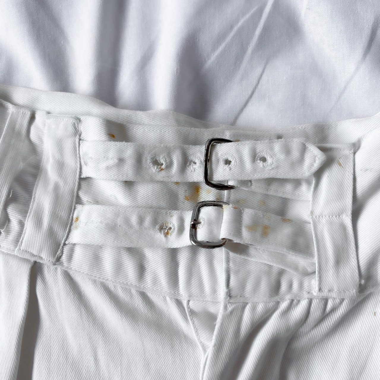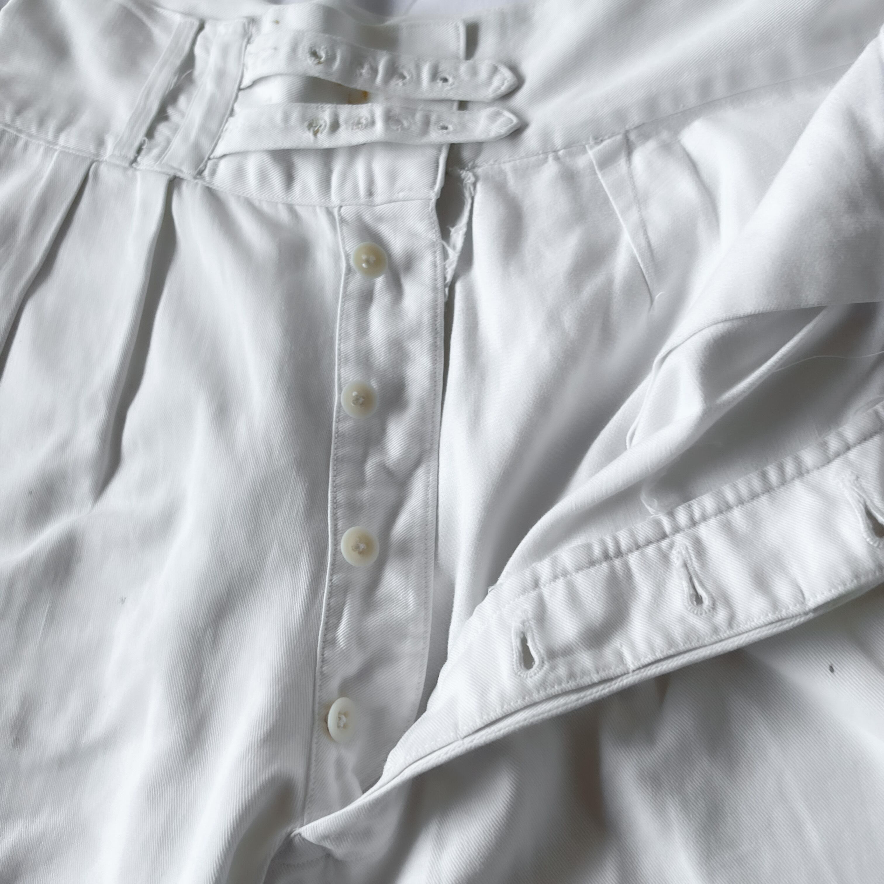 50s “ROYAL NAVY” W33相当 drill shorts McLAREN GLASGOW 製 50年代 イギリス軍 ドリルショーツ ホワイト ミリタリーパンツ ショートパンツ シンチベルト