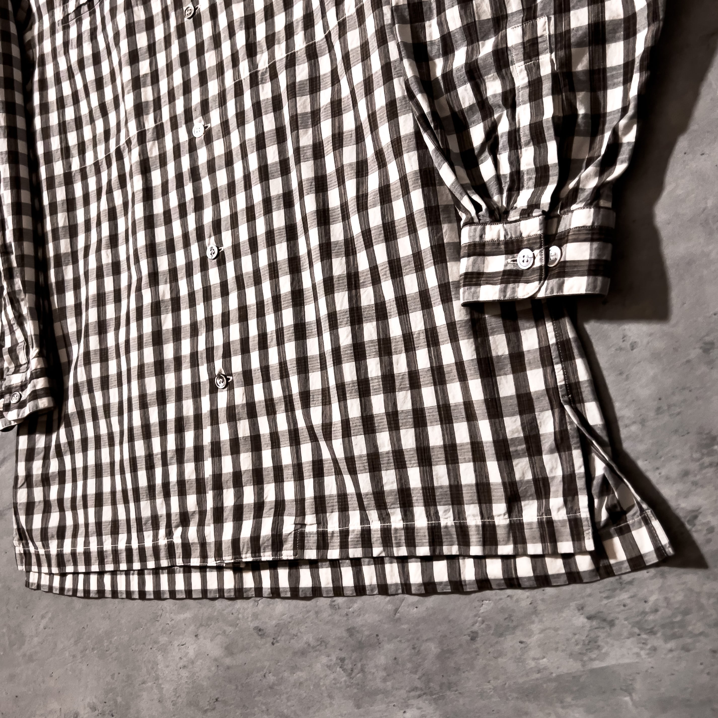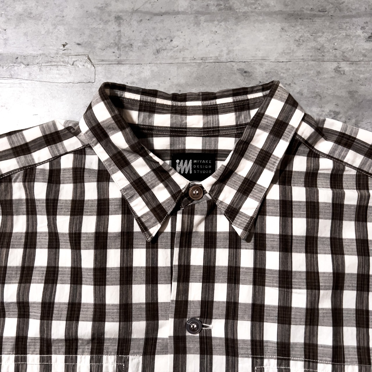 90s “im MIYAKE DESIGN STDIO” box silhouette brown check pattern shirt ミヤケデザインスタジオ イッセイミヤケ ギンガムチェックシャツ ブラウン