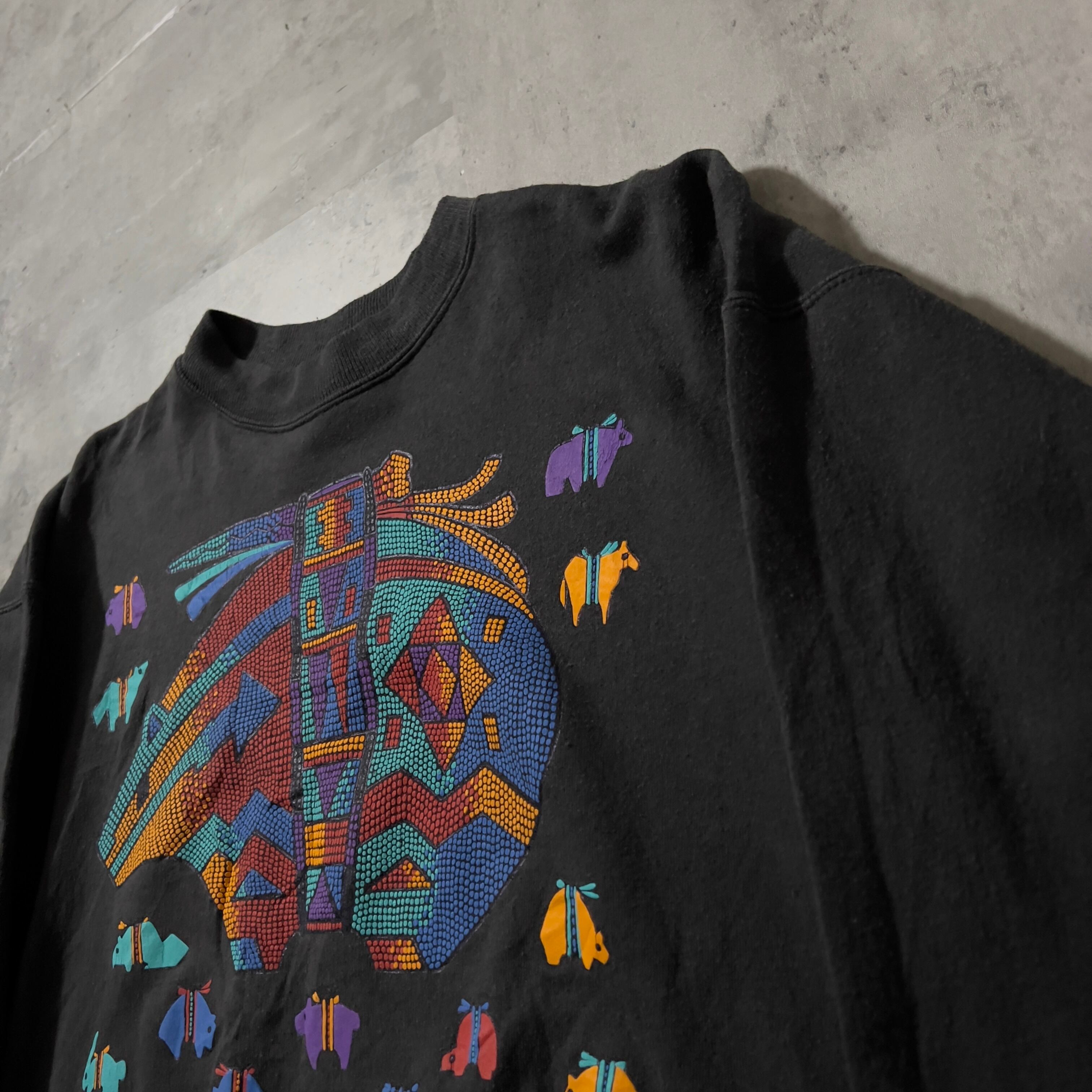 90s black animal art box silhouette sweat shirt 90年代 ブラック 墨黒 アニマル アート スウェット ボックスシルエット