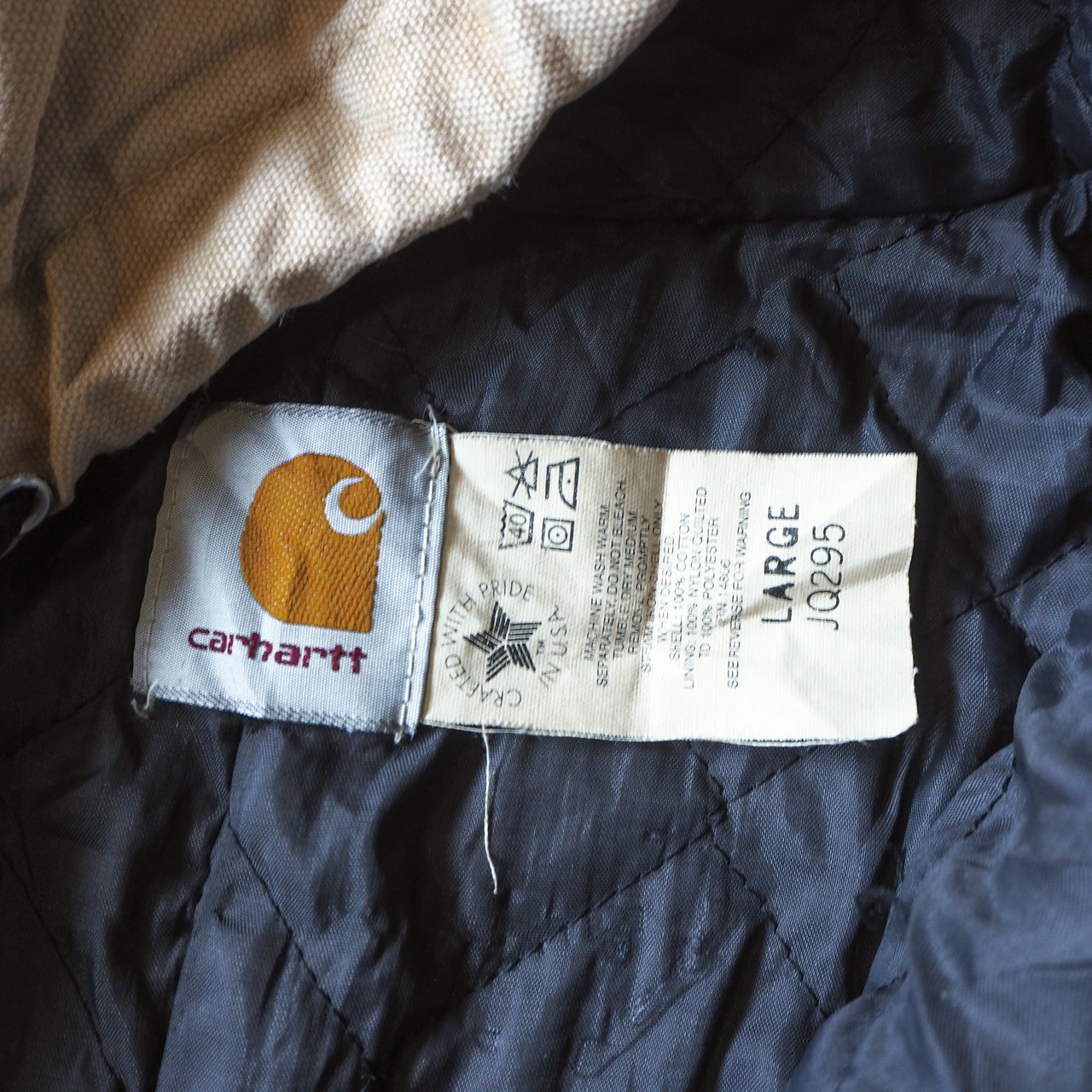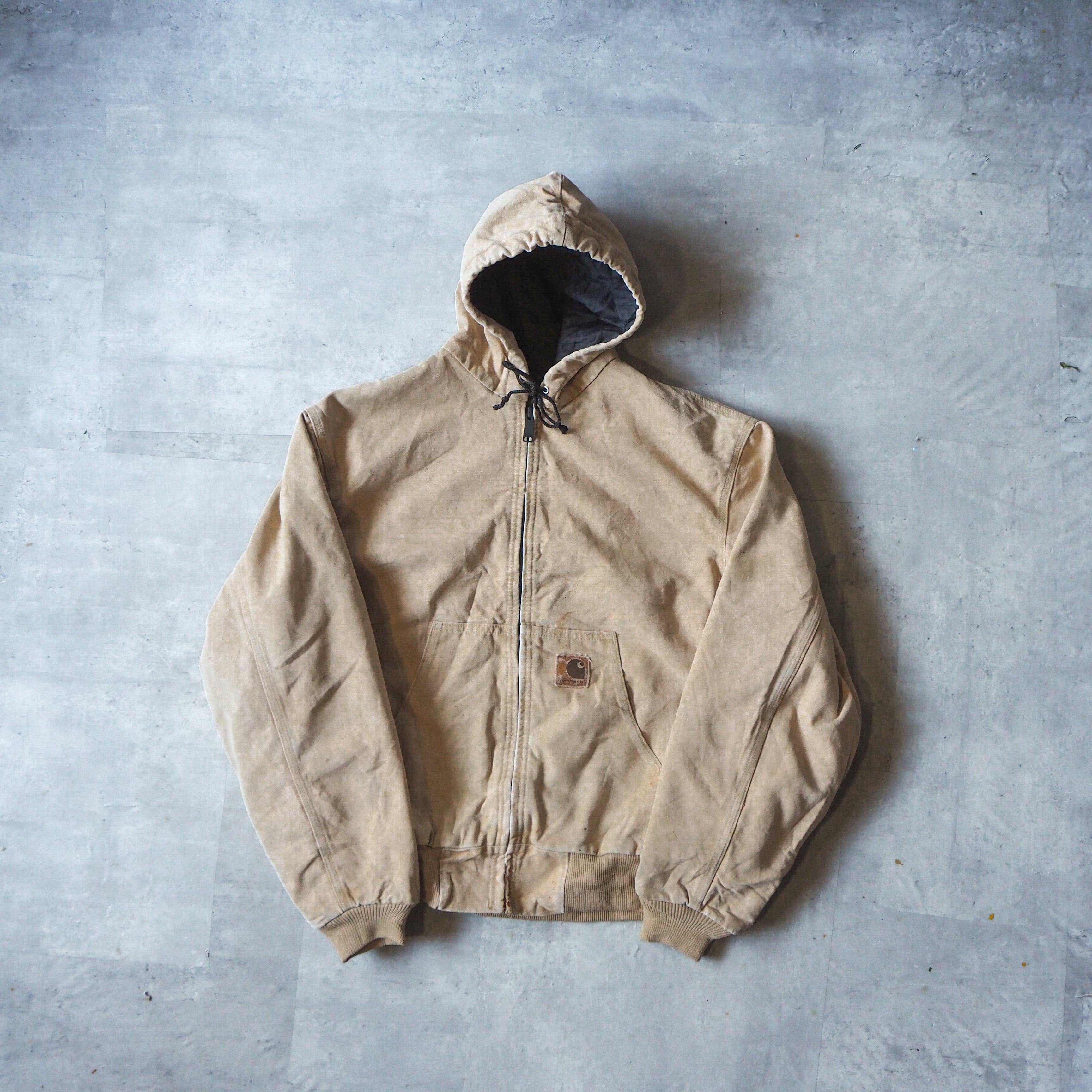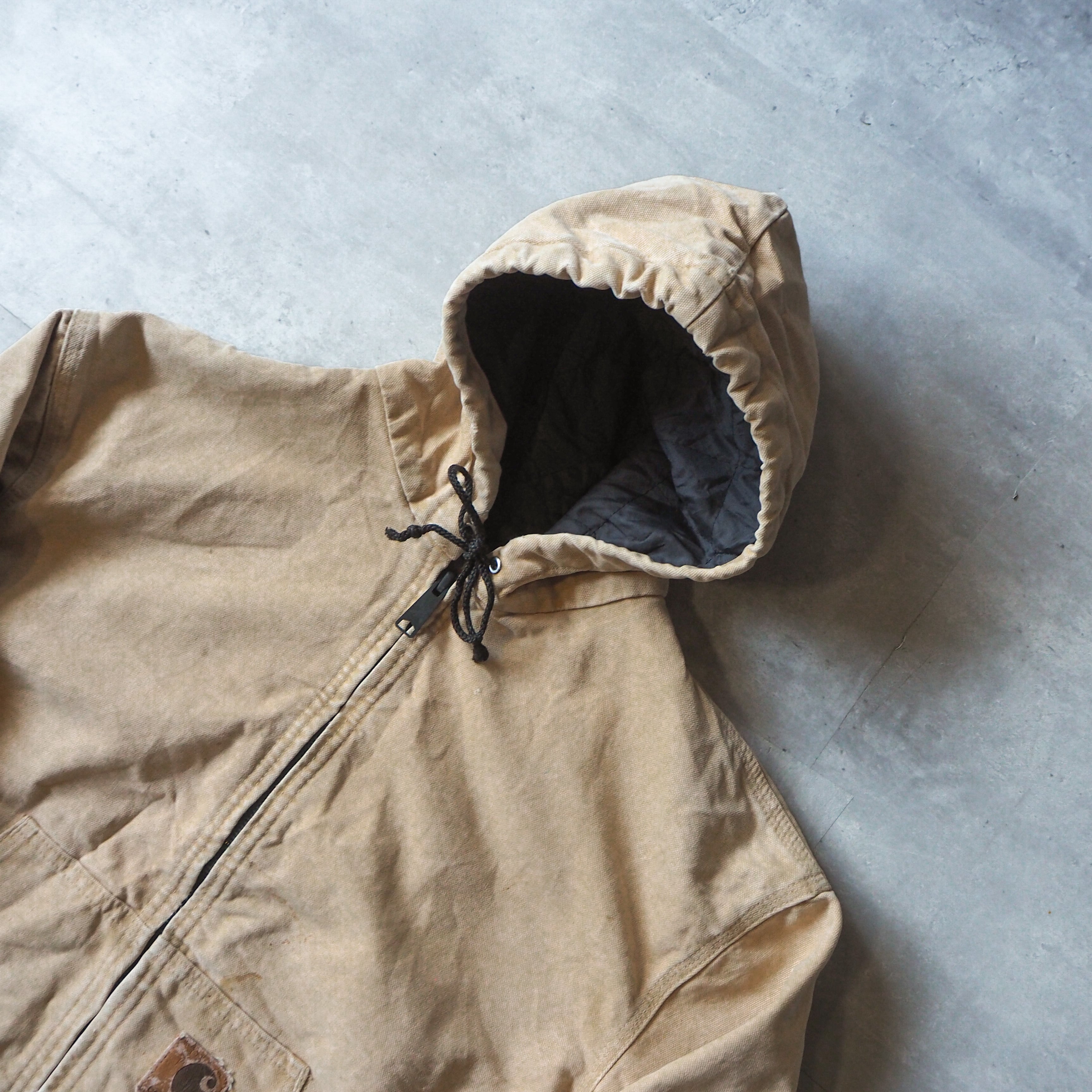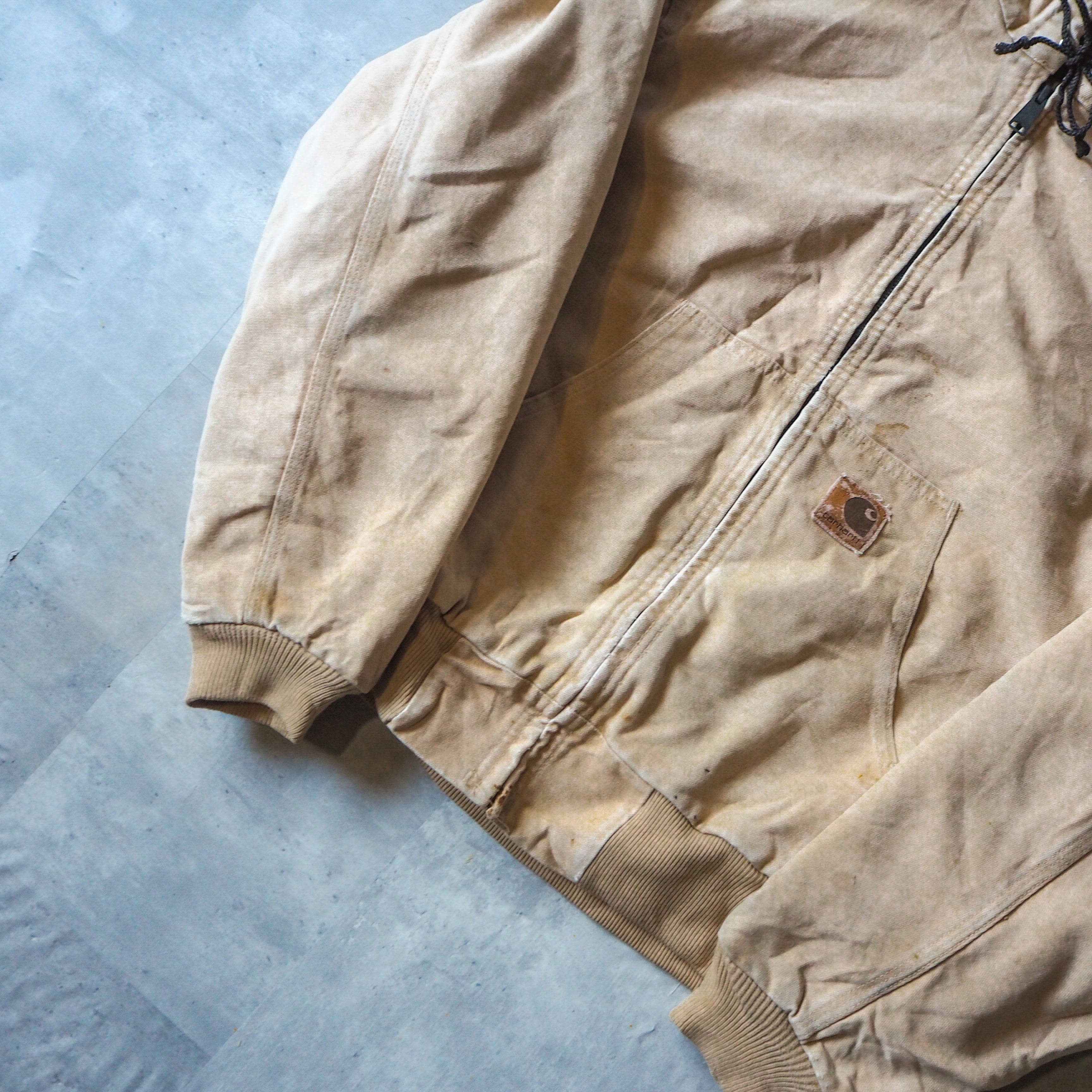 80s-90s “carhartt” crafted with pride in the USAタグ beige color active jacket L 90年代 カーハート アクティブジャケット キャメル ベージュ usa製 made in USA ジップパーカー