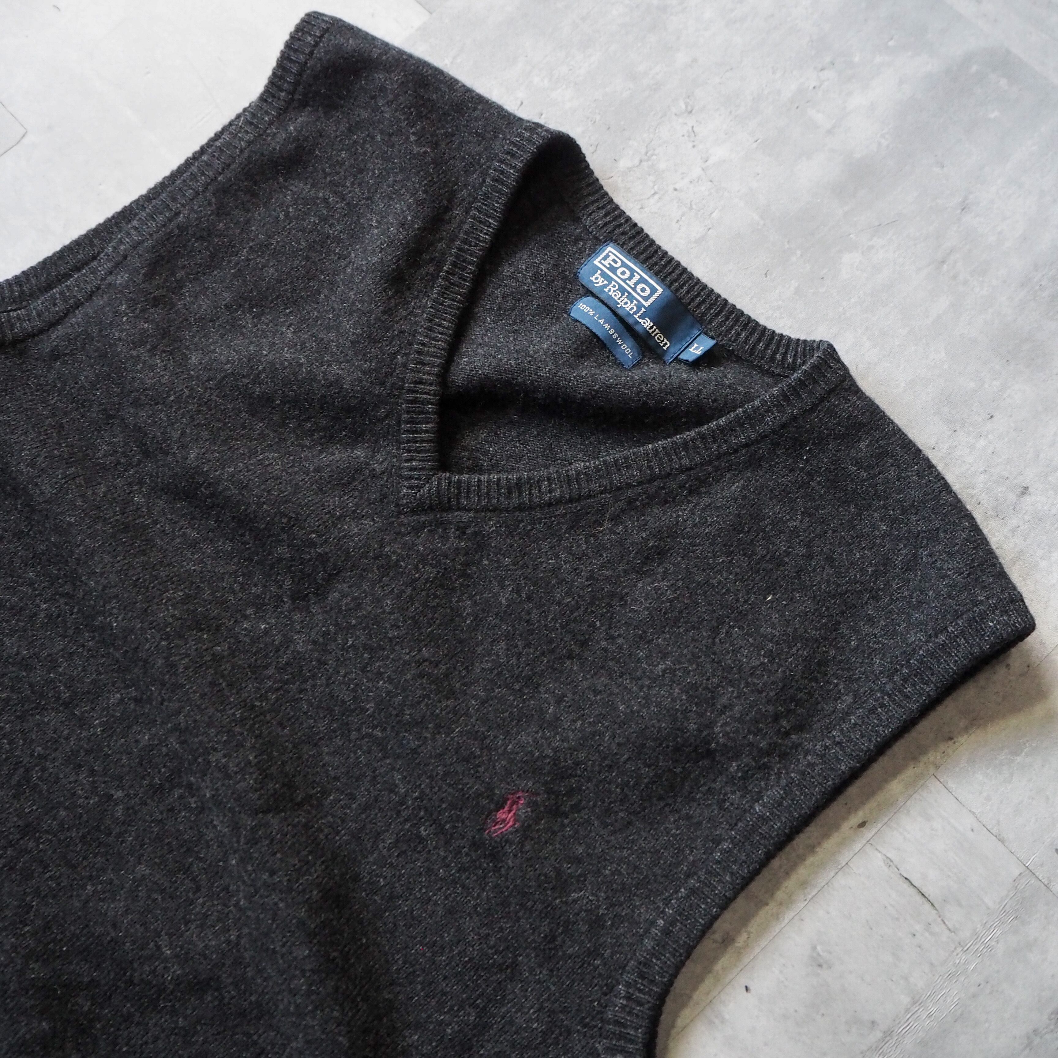 90s “polo by ralph lauren” black wool vest knit XL 90年代 ポロバイラルフローレン ウールベストニット ブラック 黒