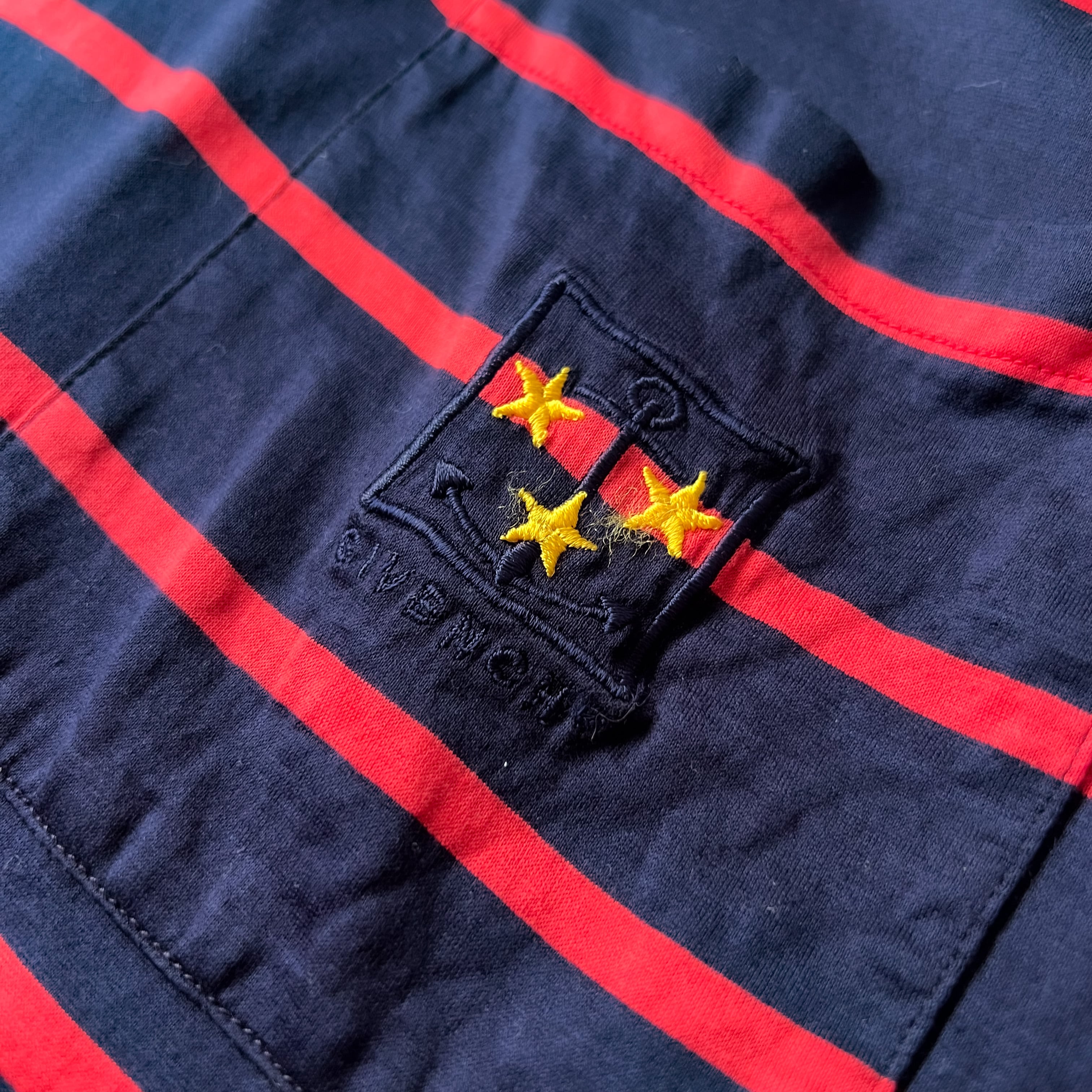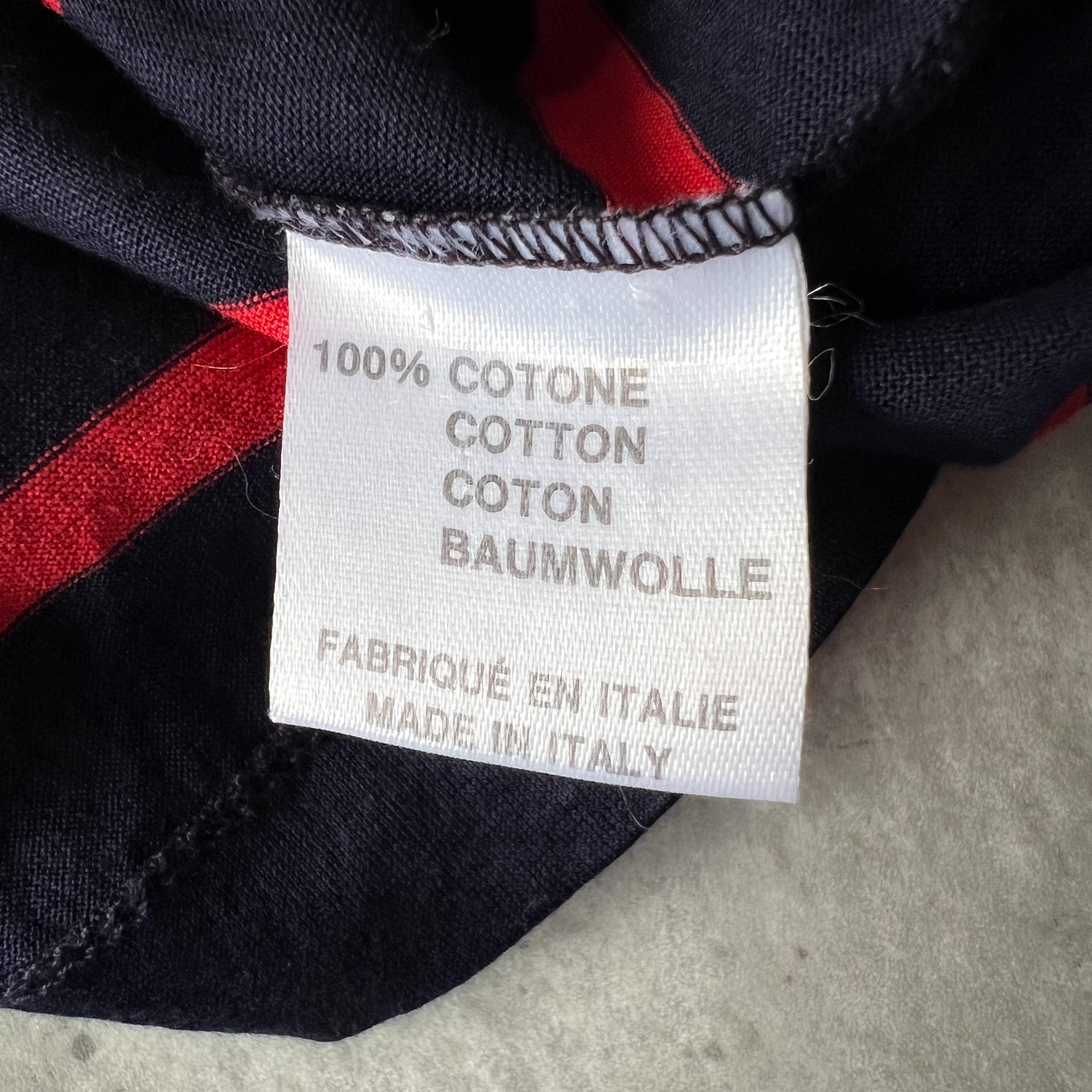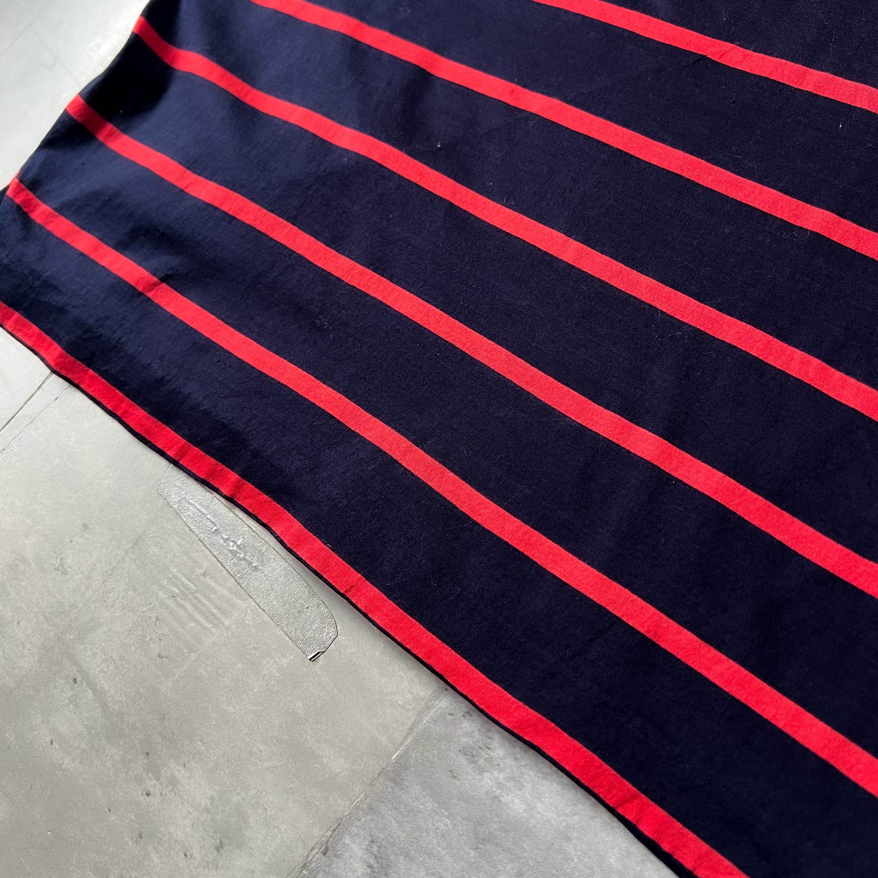 赤とネイビーのボーダーの色合いが