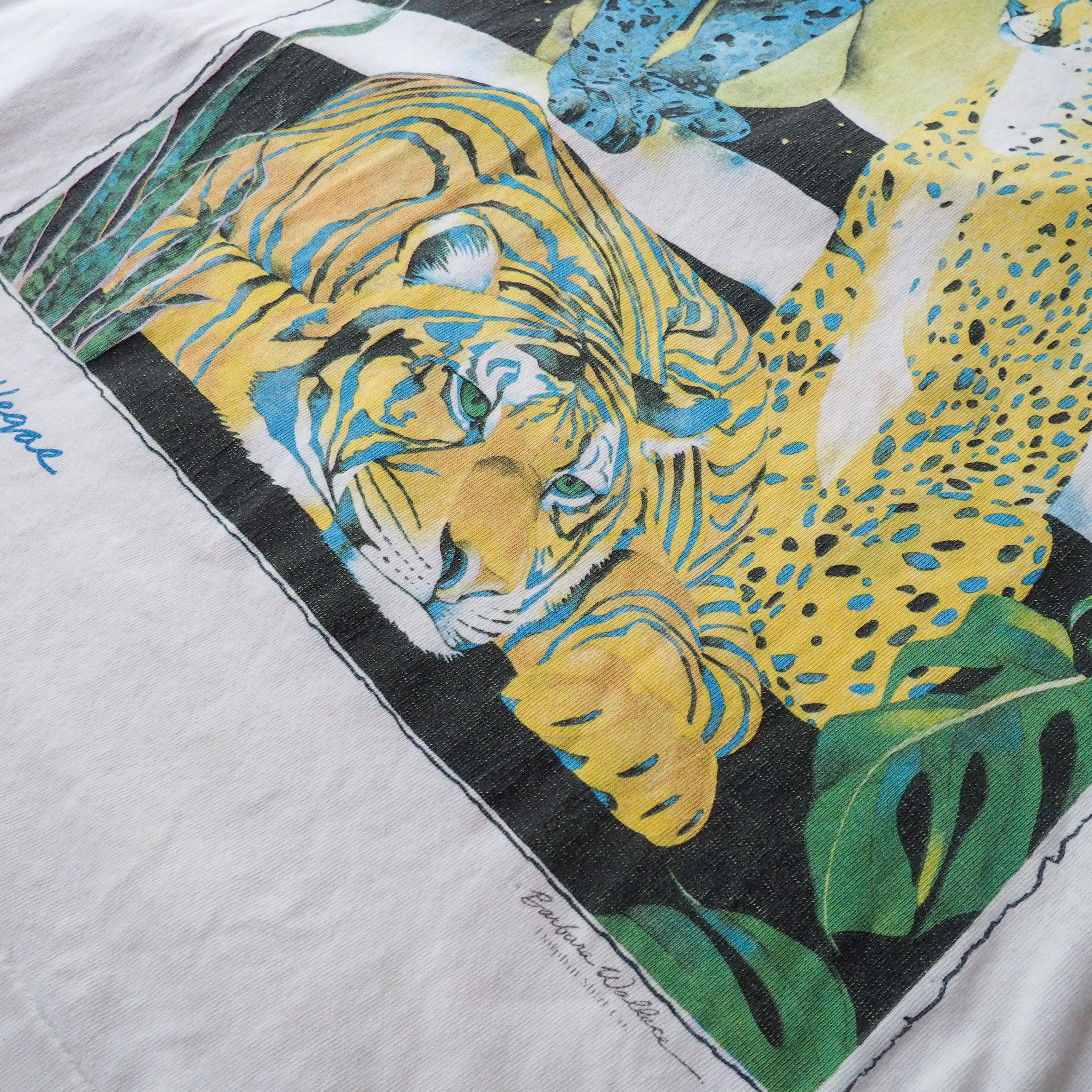 90s 淡いタッチの虎と豹とライオンの雌のアートtシャツ 90年代 動物 アート系