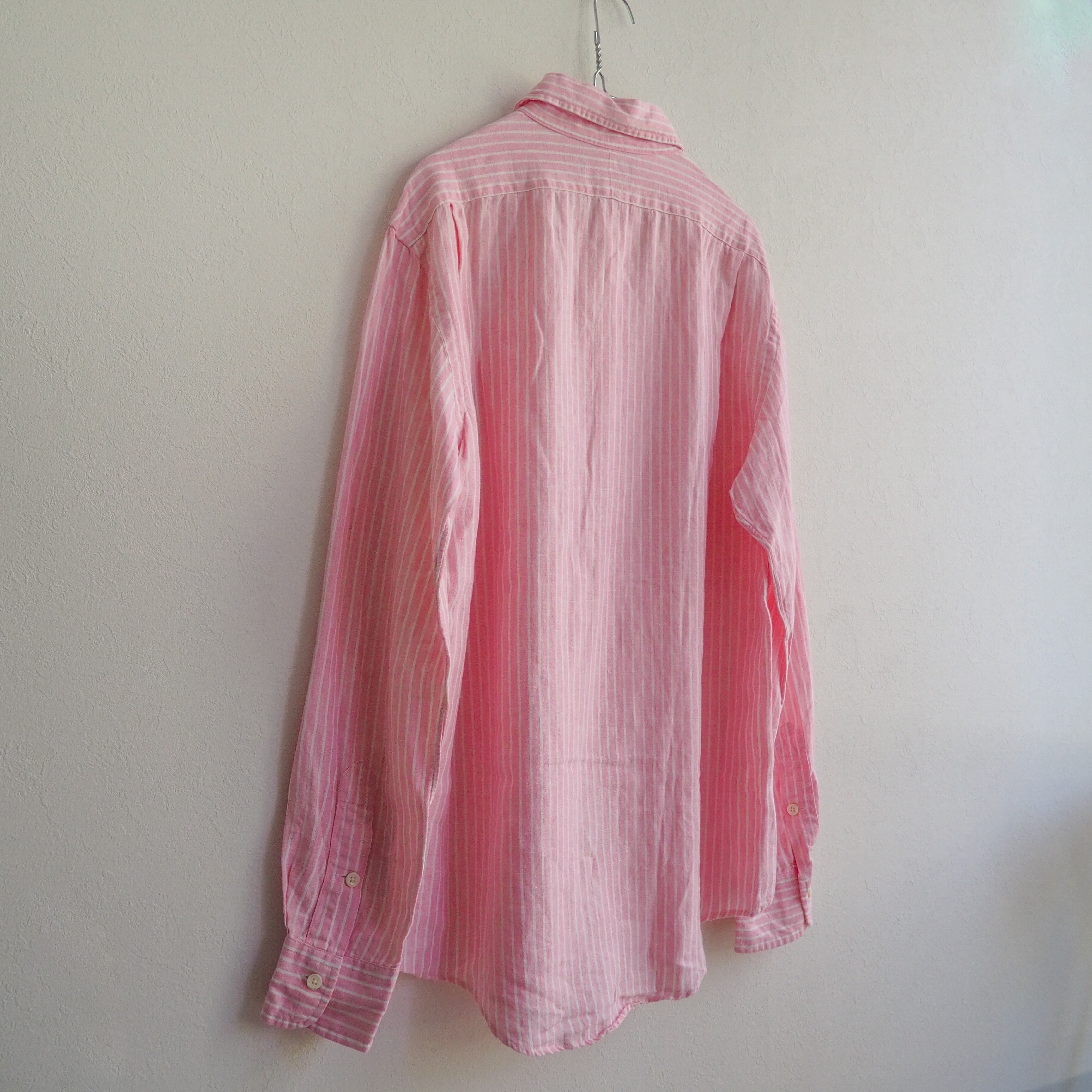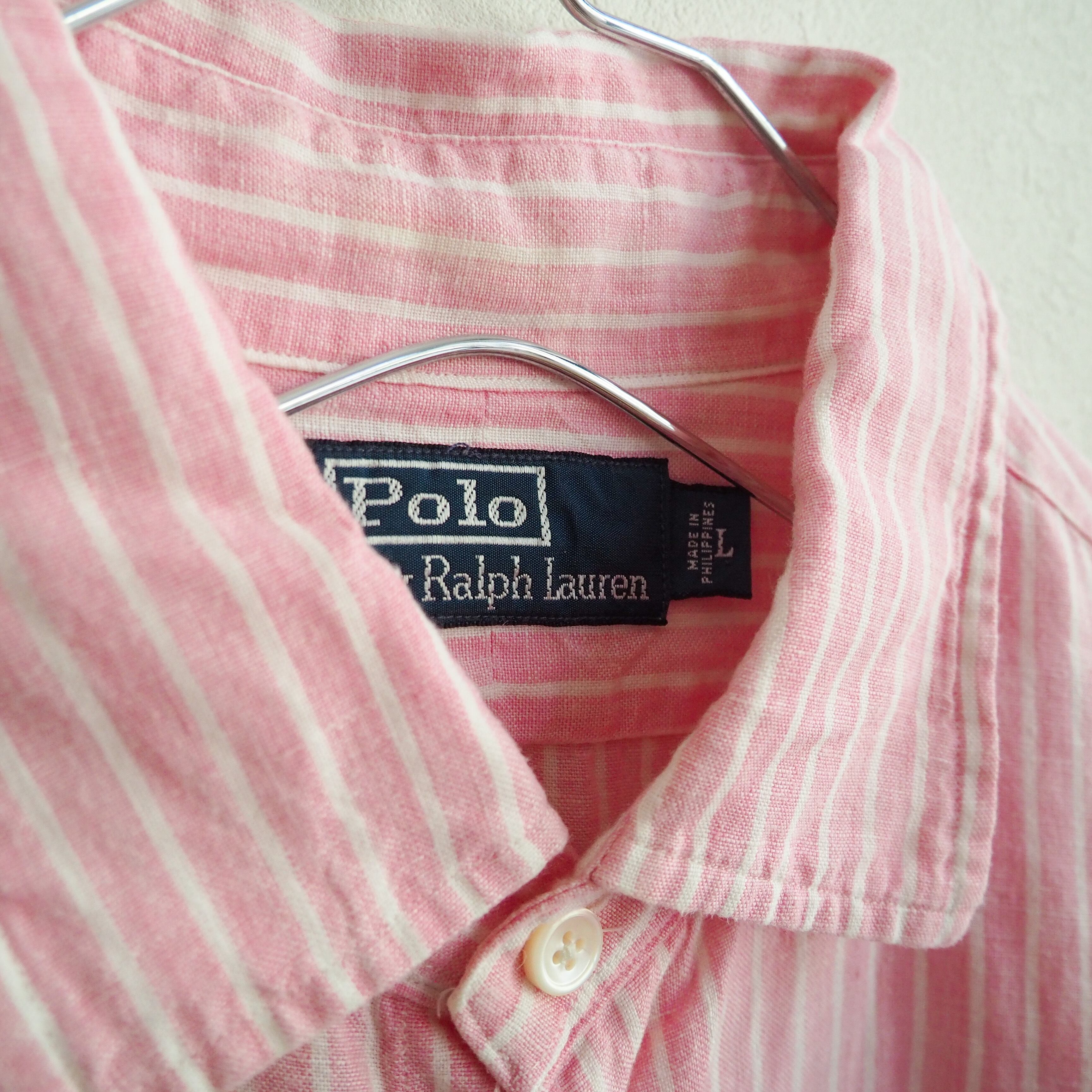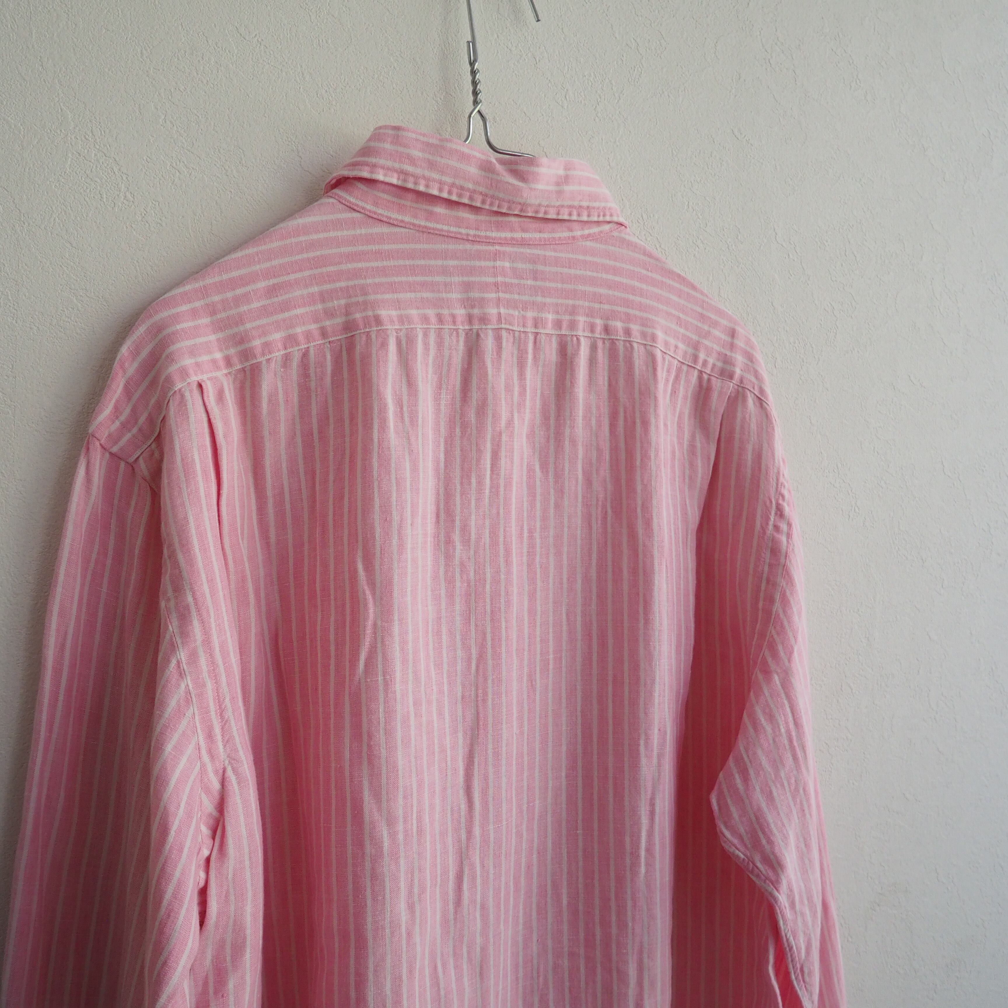 90s “polo by ralph lauren” linen pink stripe pattern shirt 90年代 ポロバイラルフローレン リネンシャツ ストライプ 麻