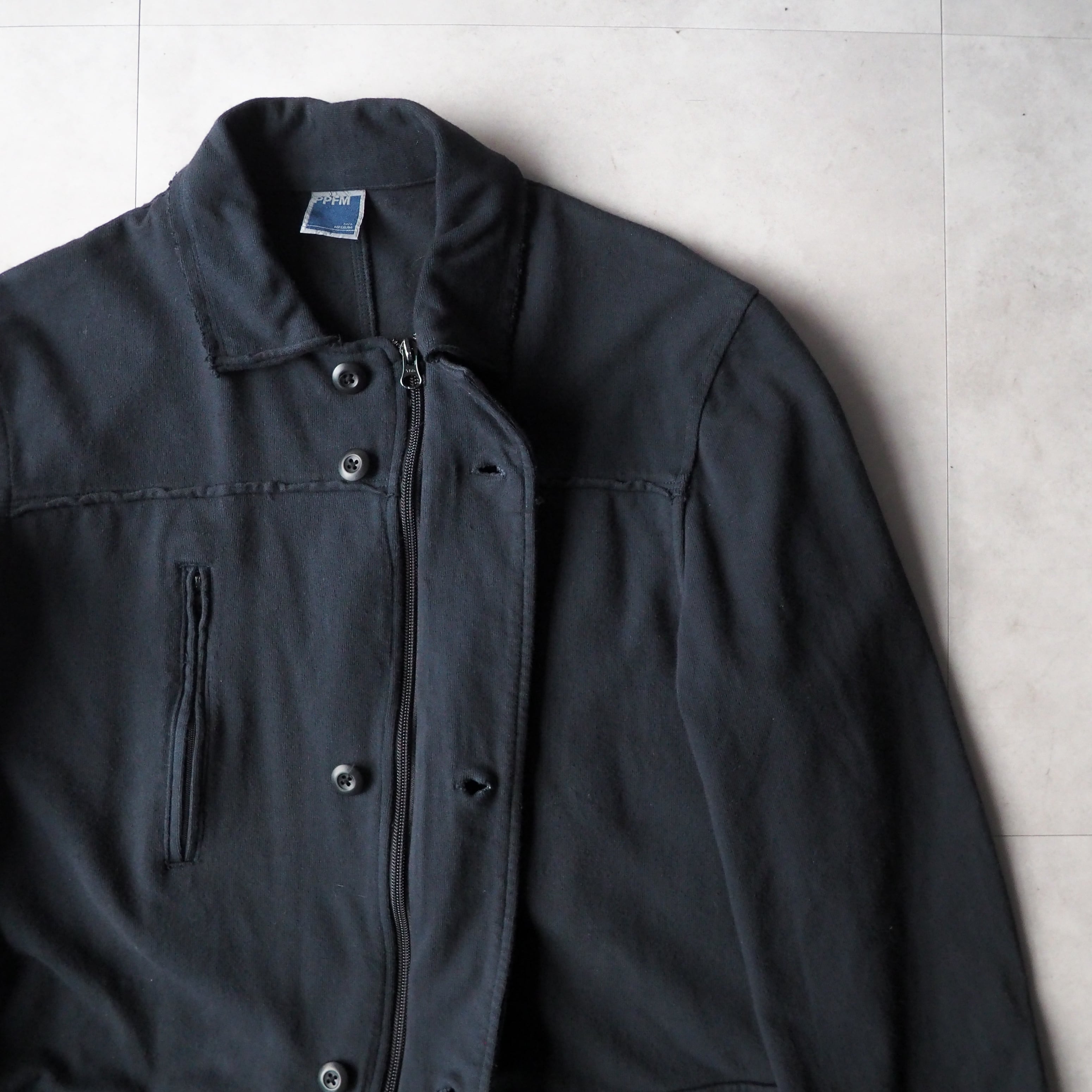 90s-2000s “PPFM” black sweat jacket F-2 sampling 90年代 2000年代 PEYTON PLACE FOR MEN ブラック ジャケット フランス軍F-2サンプリング 斜めジッパー マルイ系 スウェット地