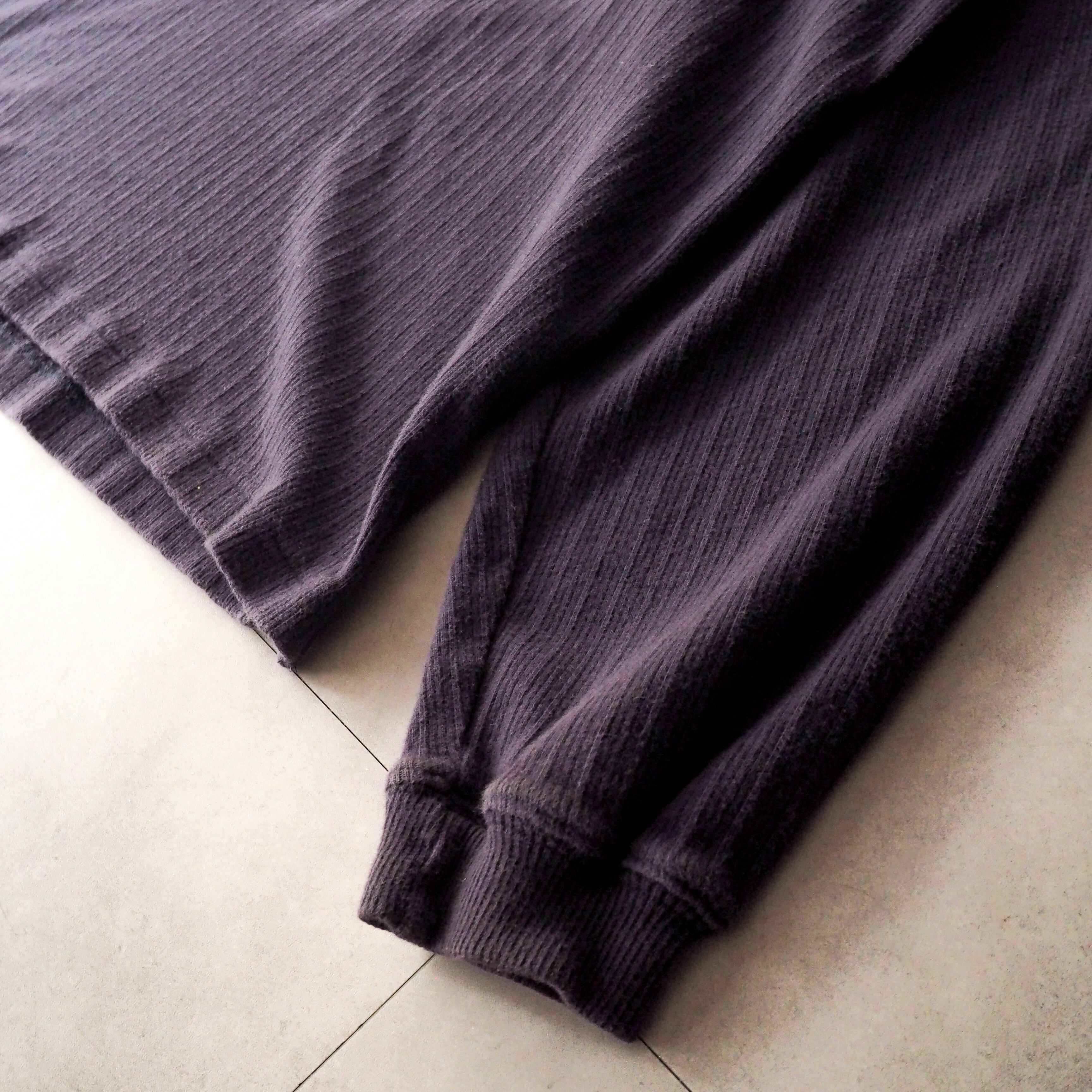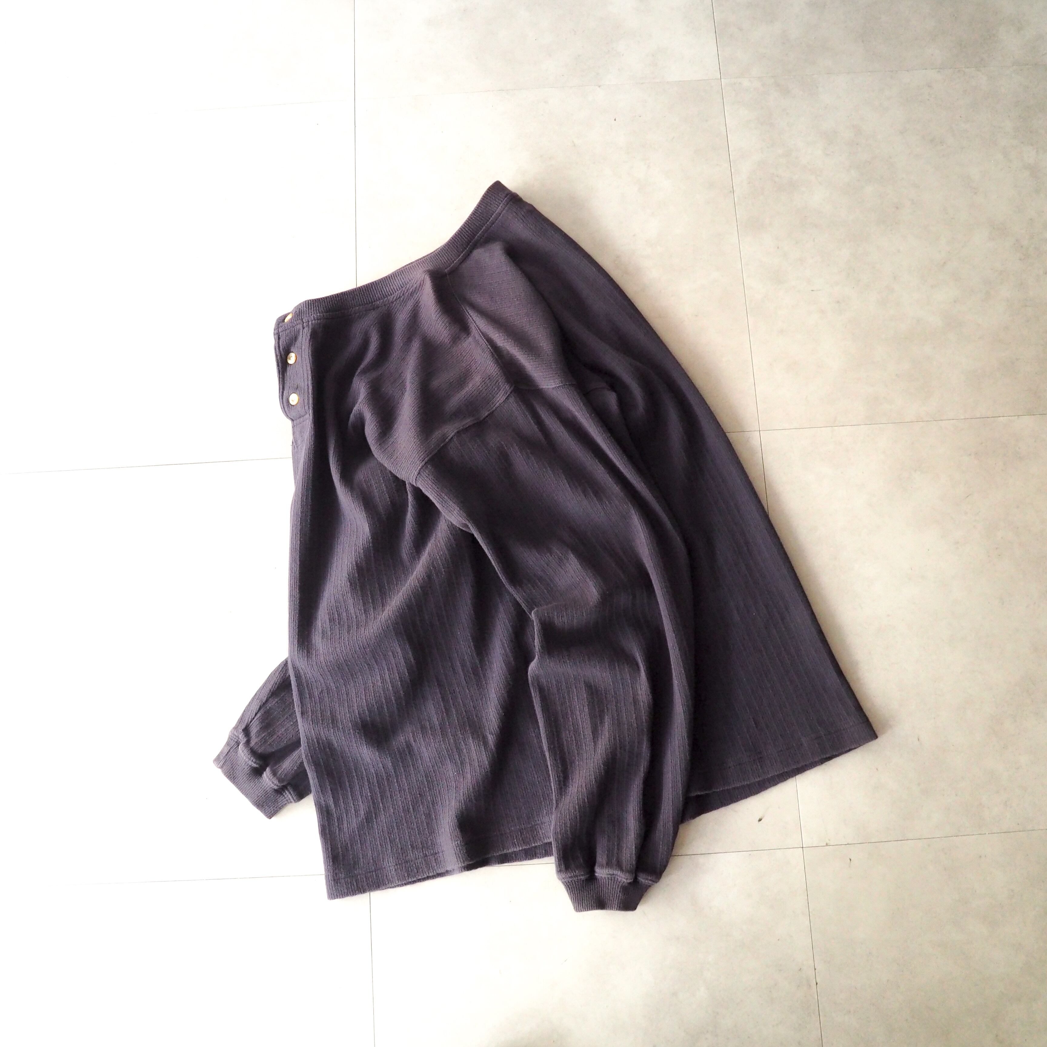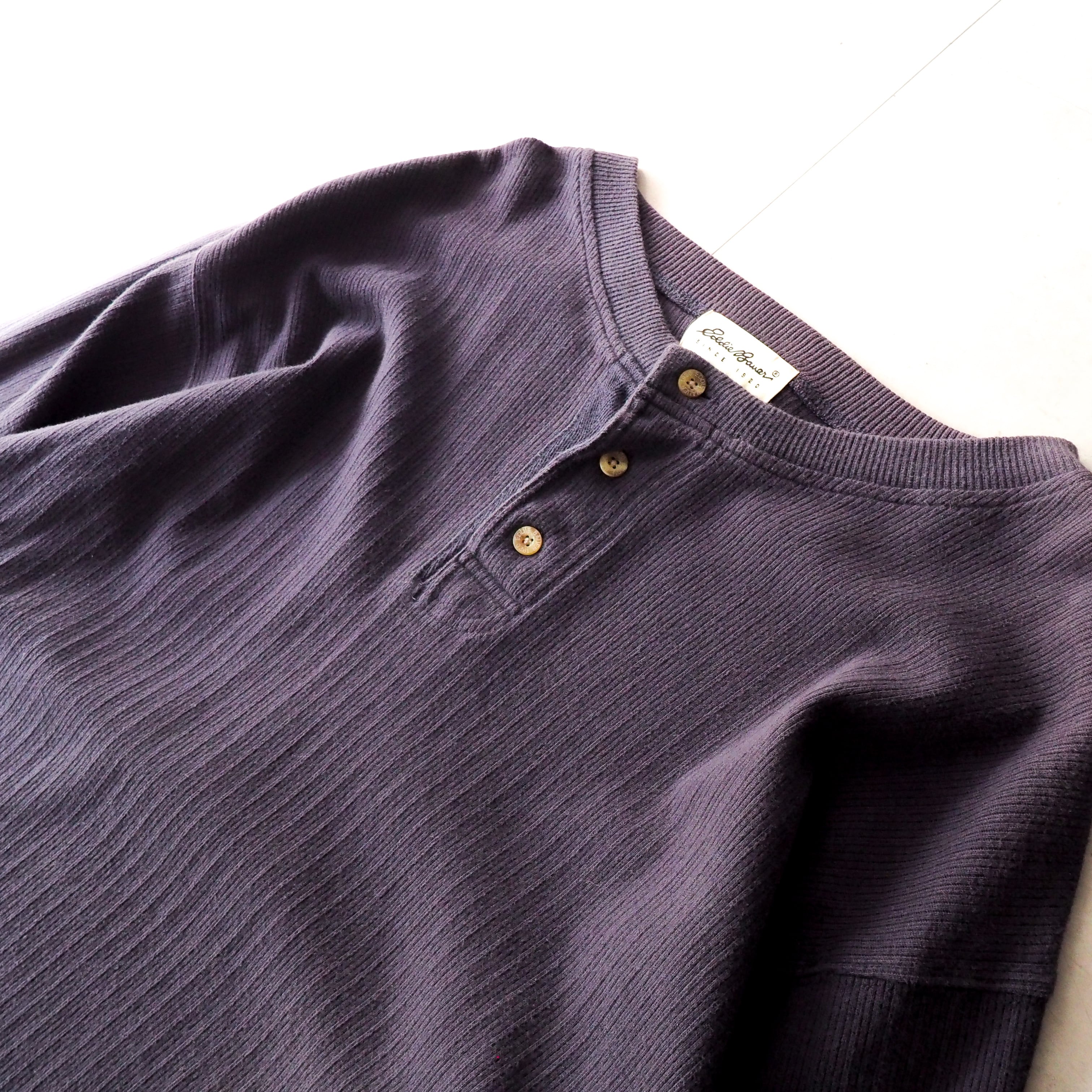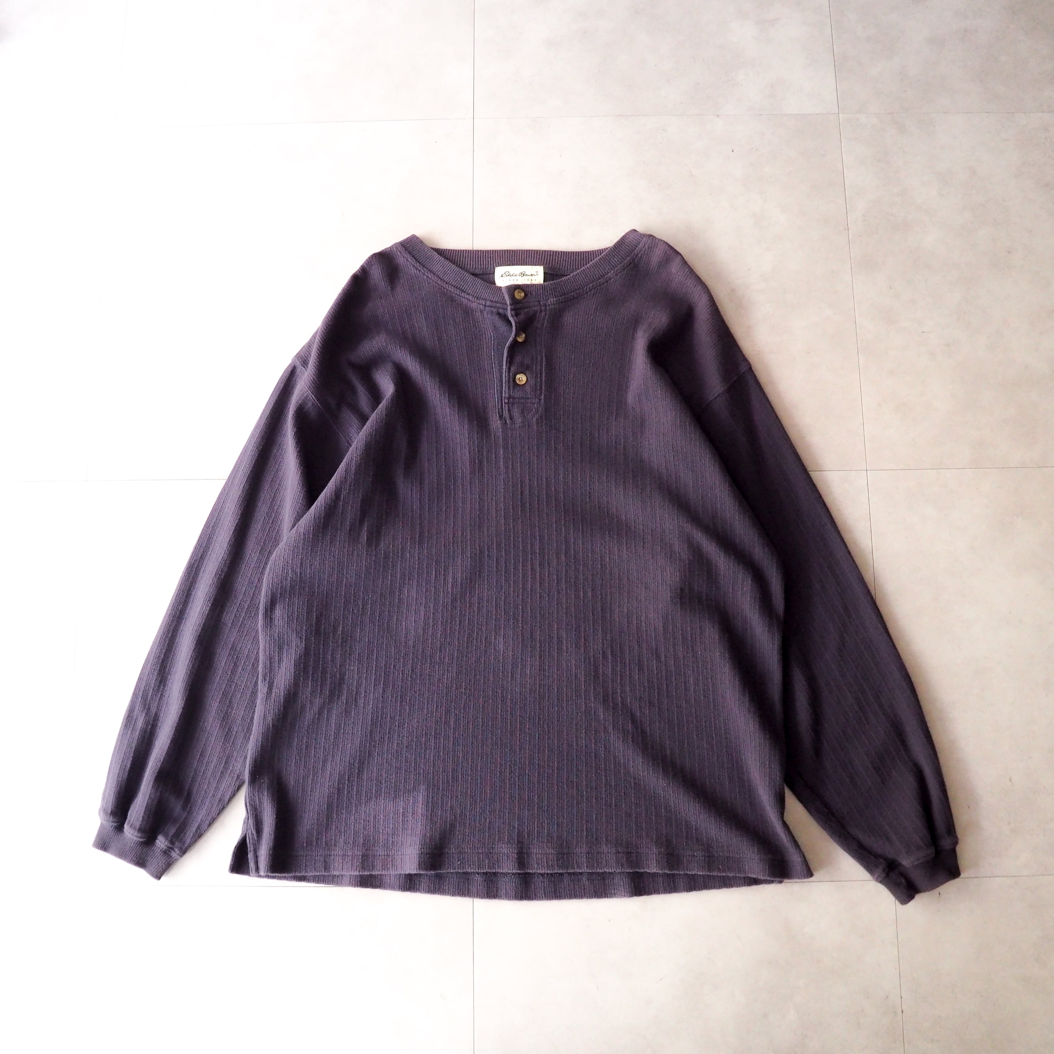 90s “Eddie Bauer” ナス紺 針抜き コットン ヘンリーネック 長袖 tシャツ