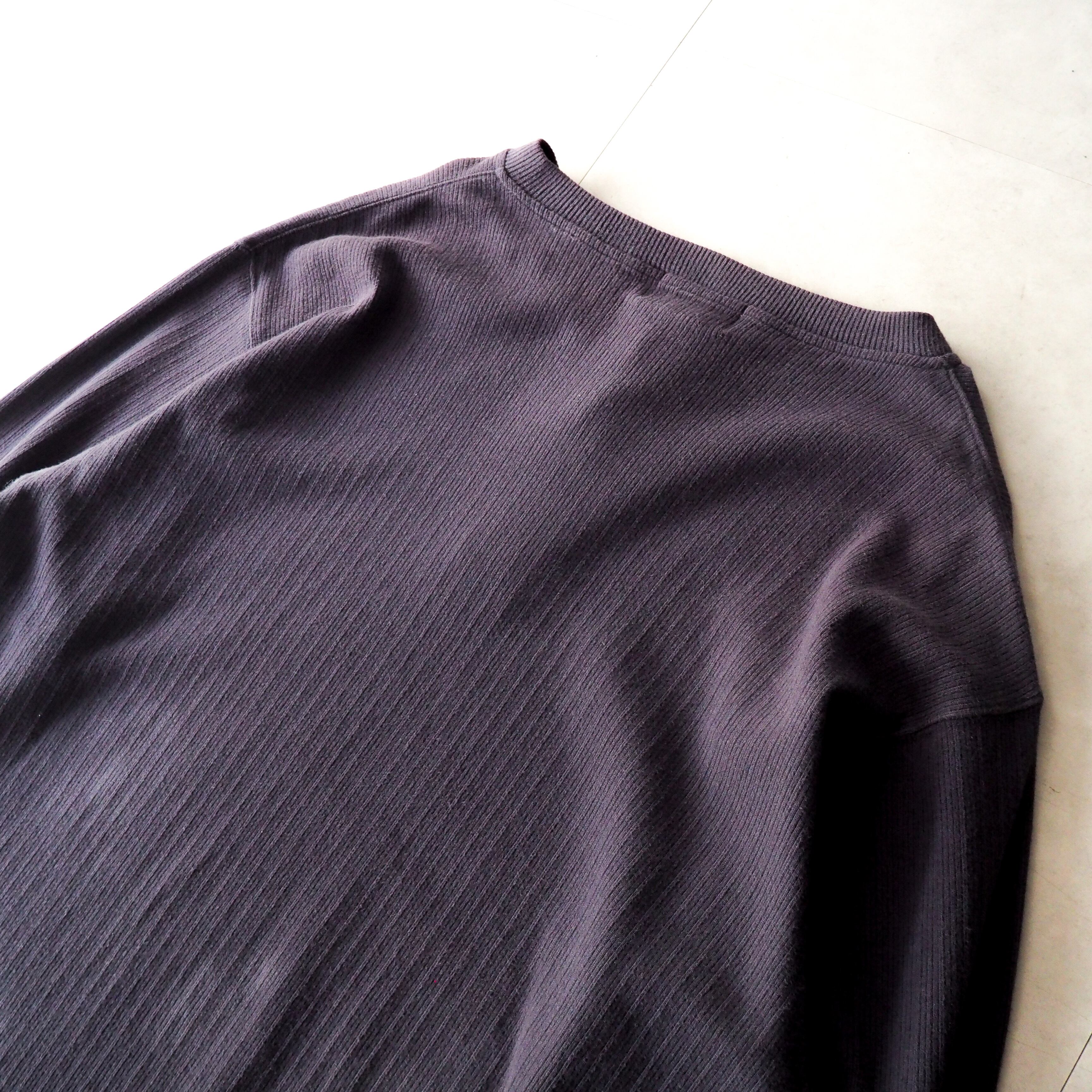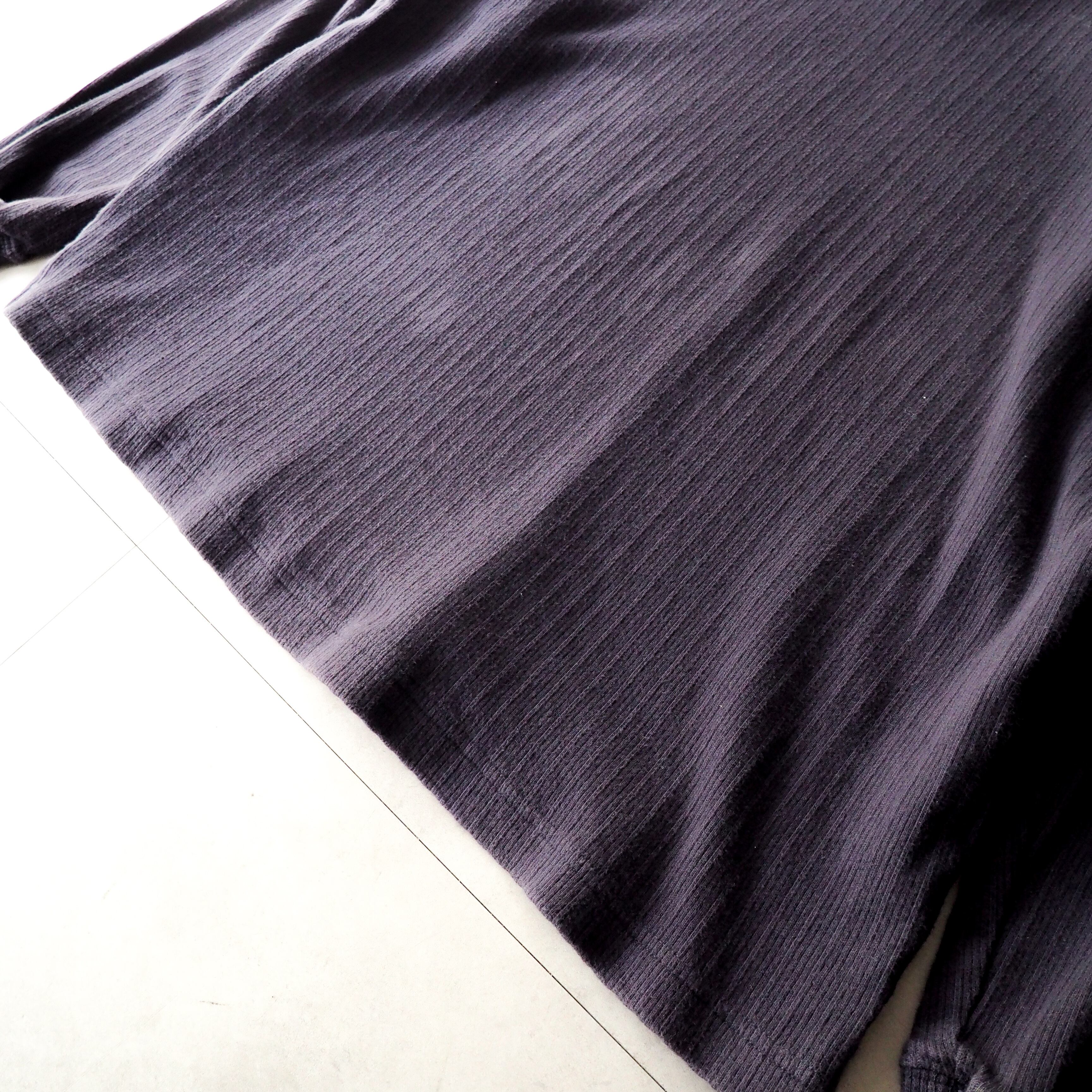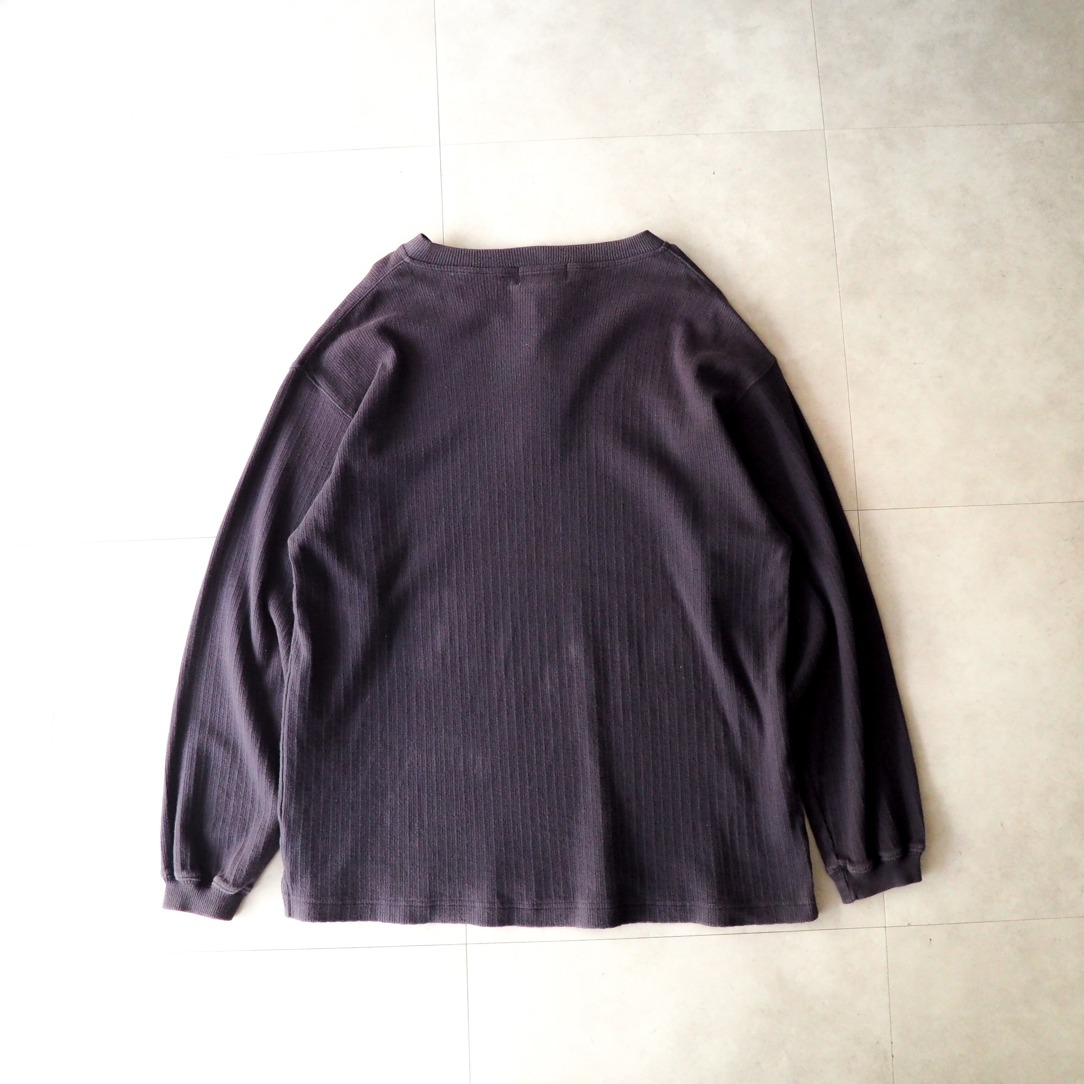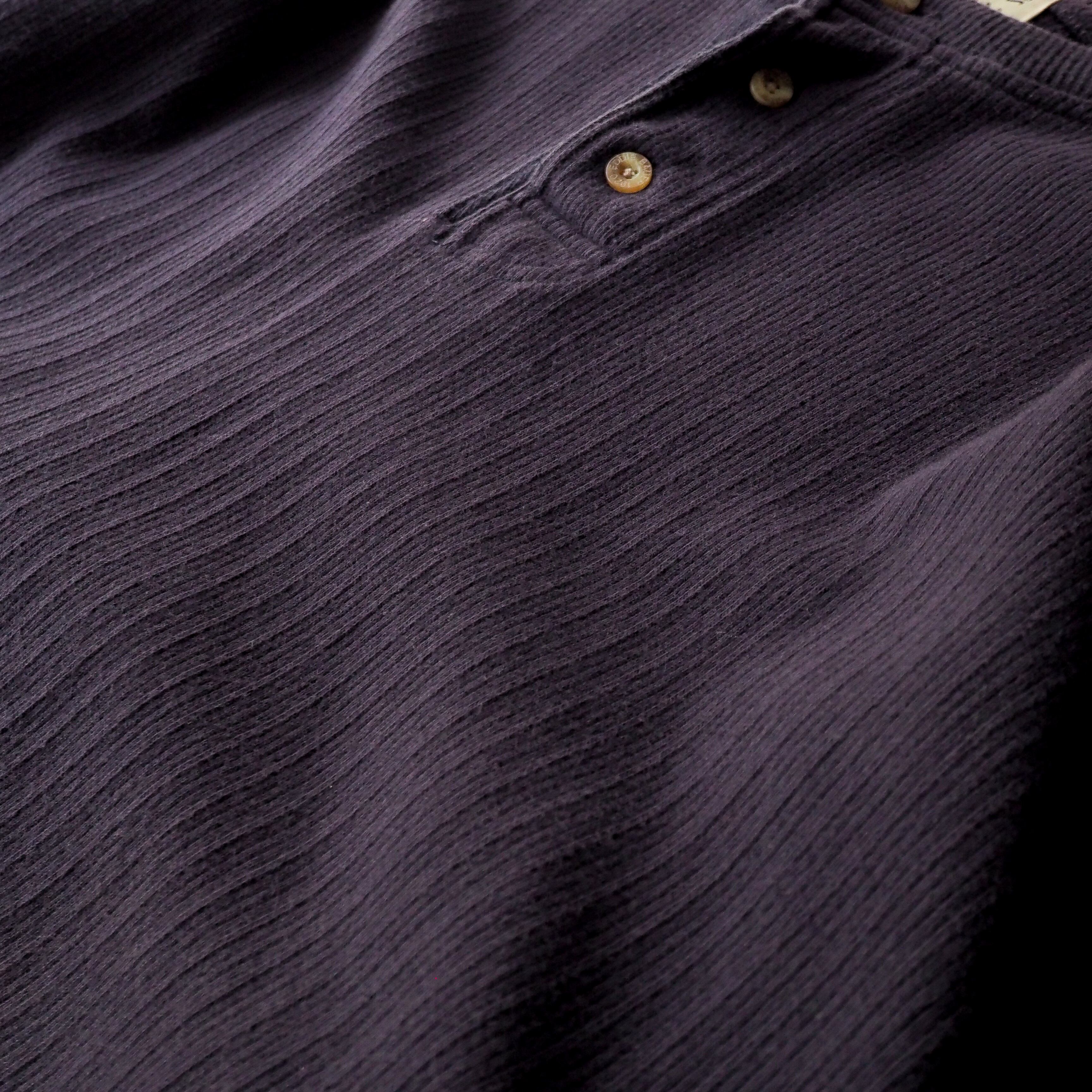 90s “Eddie Bauer” ナス紺 針抜き コットン ヘンリーネック 長袖 tシャツ