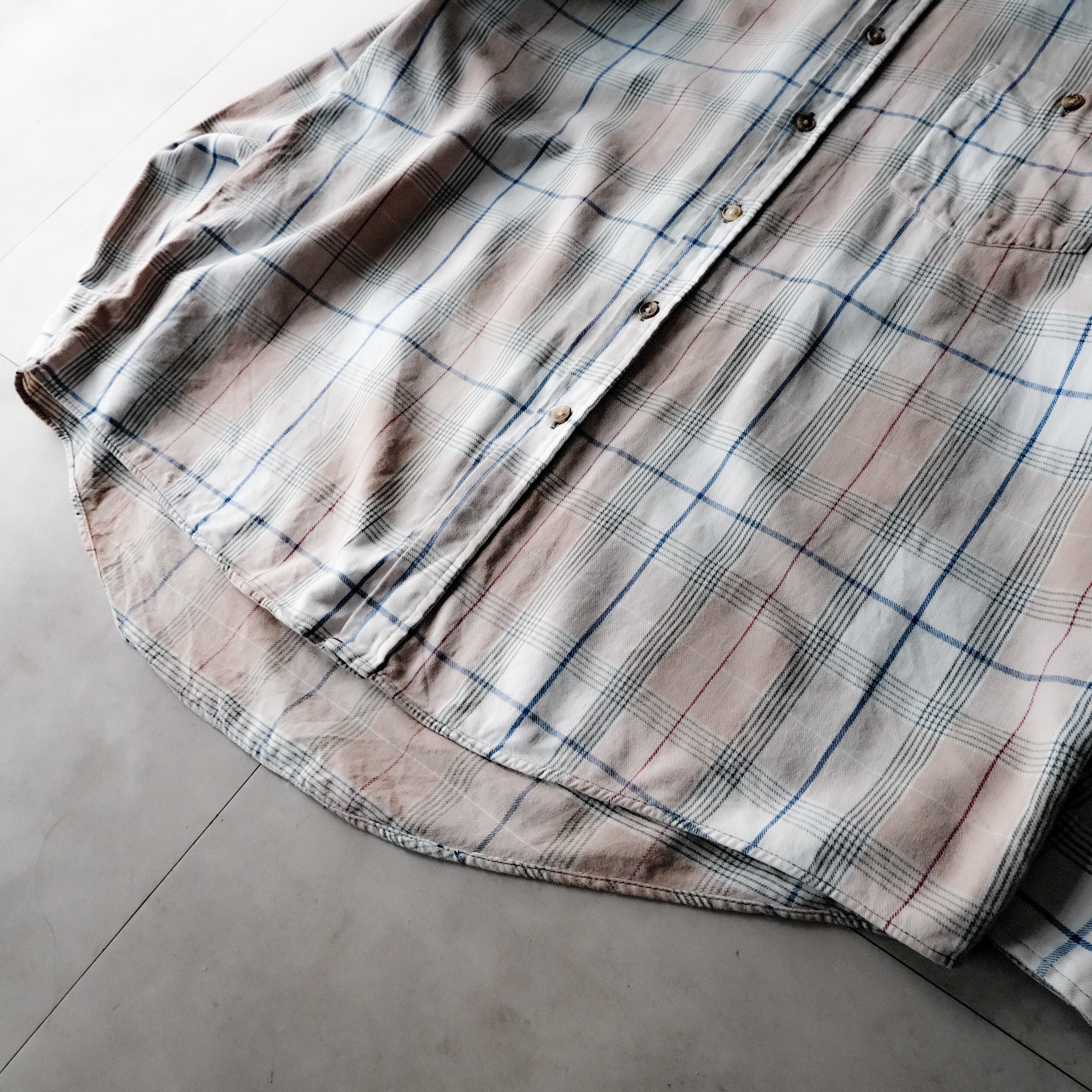 淡い色のチェックがグッドカラーなネルシャツ。